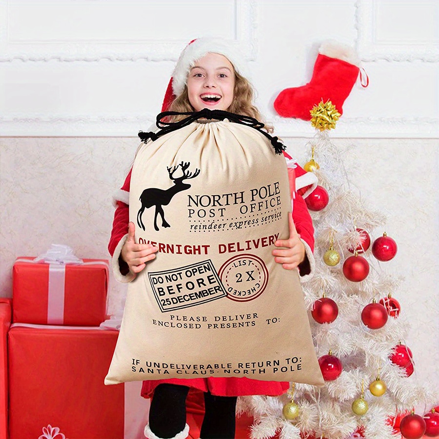 1/2/3pcs Large Personalized Santa Sack, Christmas Gift Bags, Big Santa Cotton Bags, Bulk Christmas Sacks For Presents With Drawstring Size, 19.3 X 27.2 Inch
