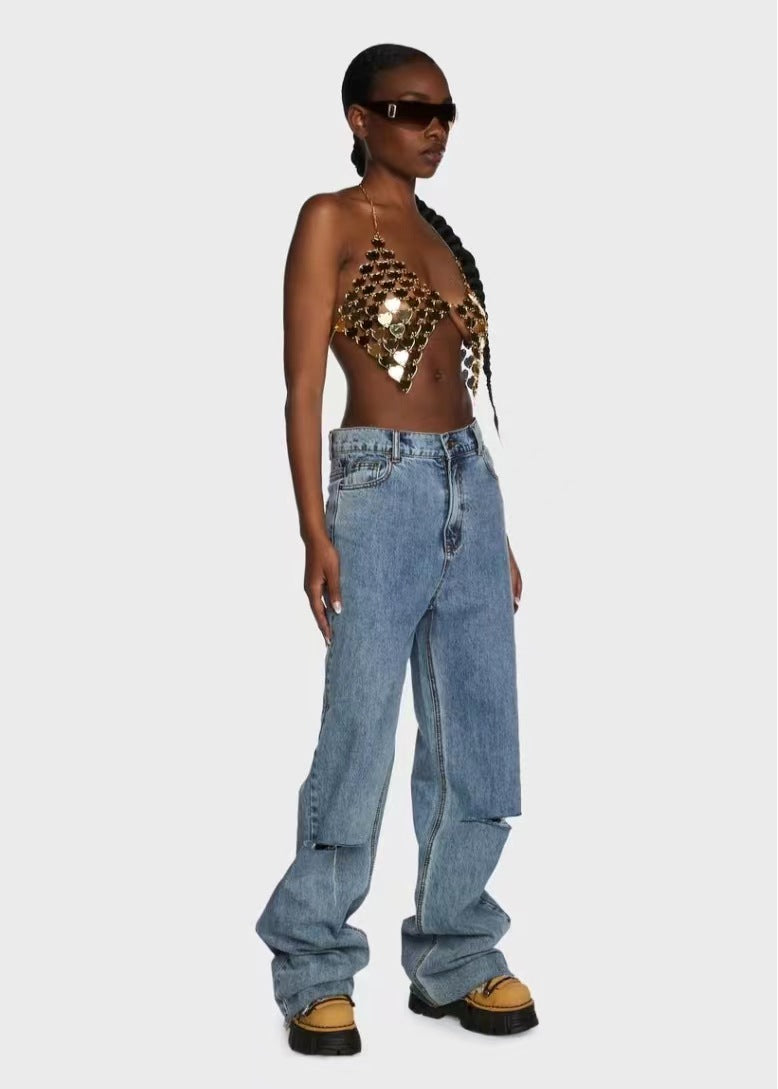 2025 120141 2025 vest love acrylic sequins splicing sexy hollow neck wrap chest small vest body chain
