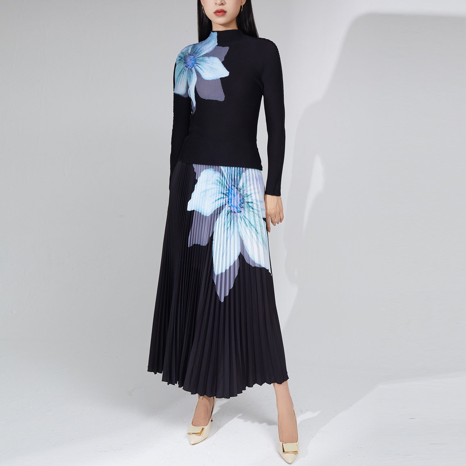 2025 2025 Popular trade women's clothing is popular, spring and summer fashion temperament pleated suit women's t-shirt skirt two-piece set
