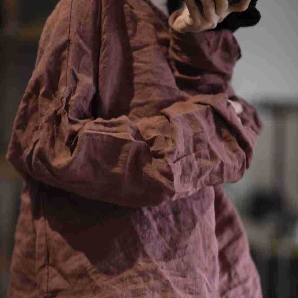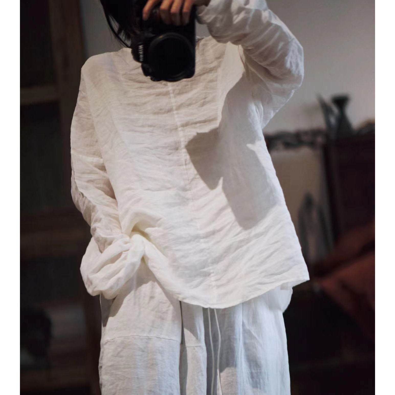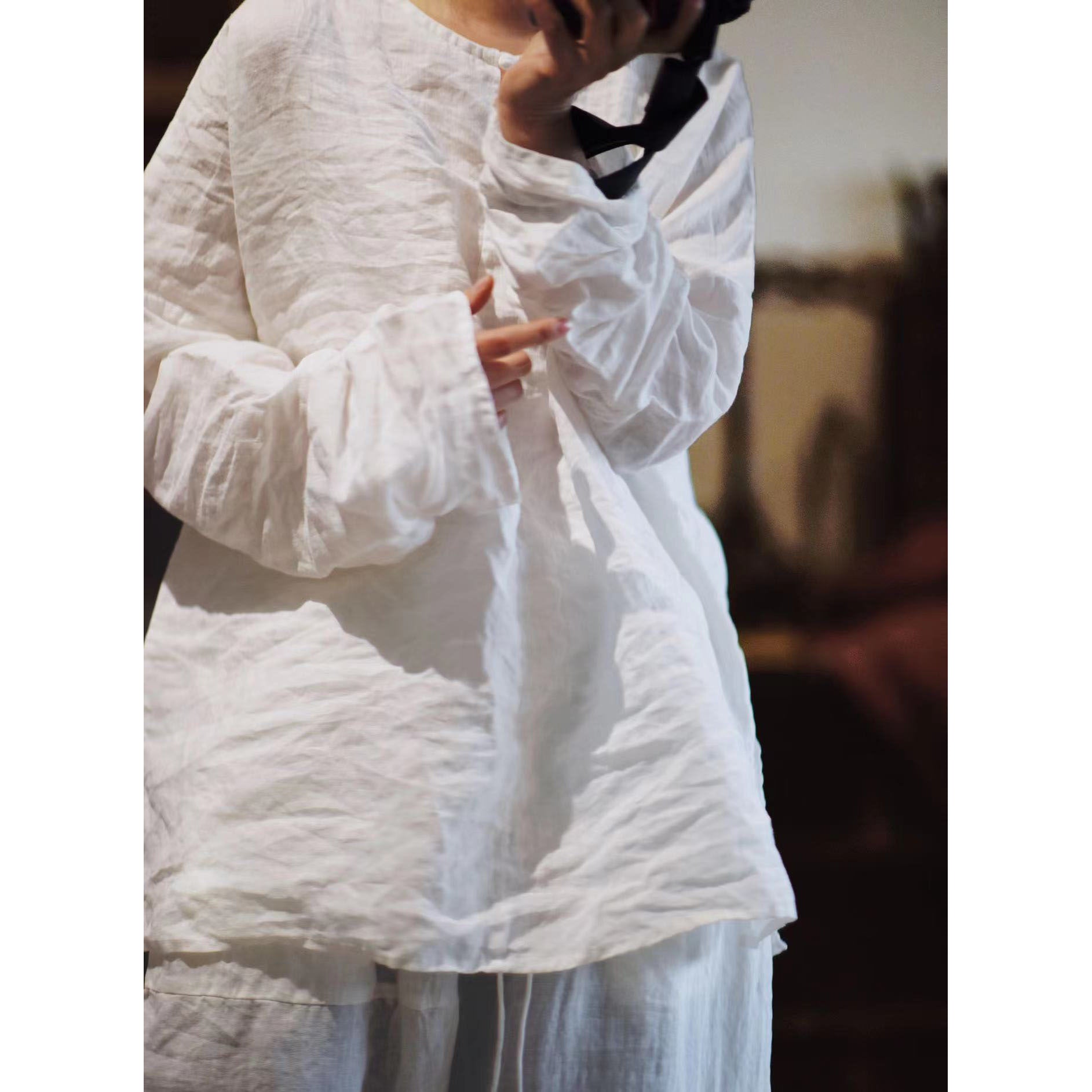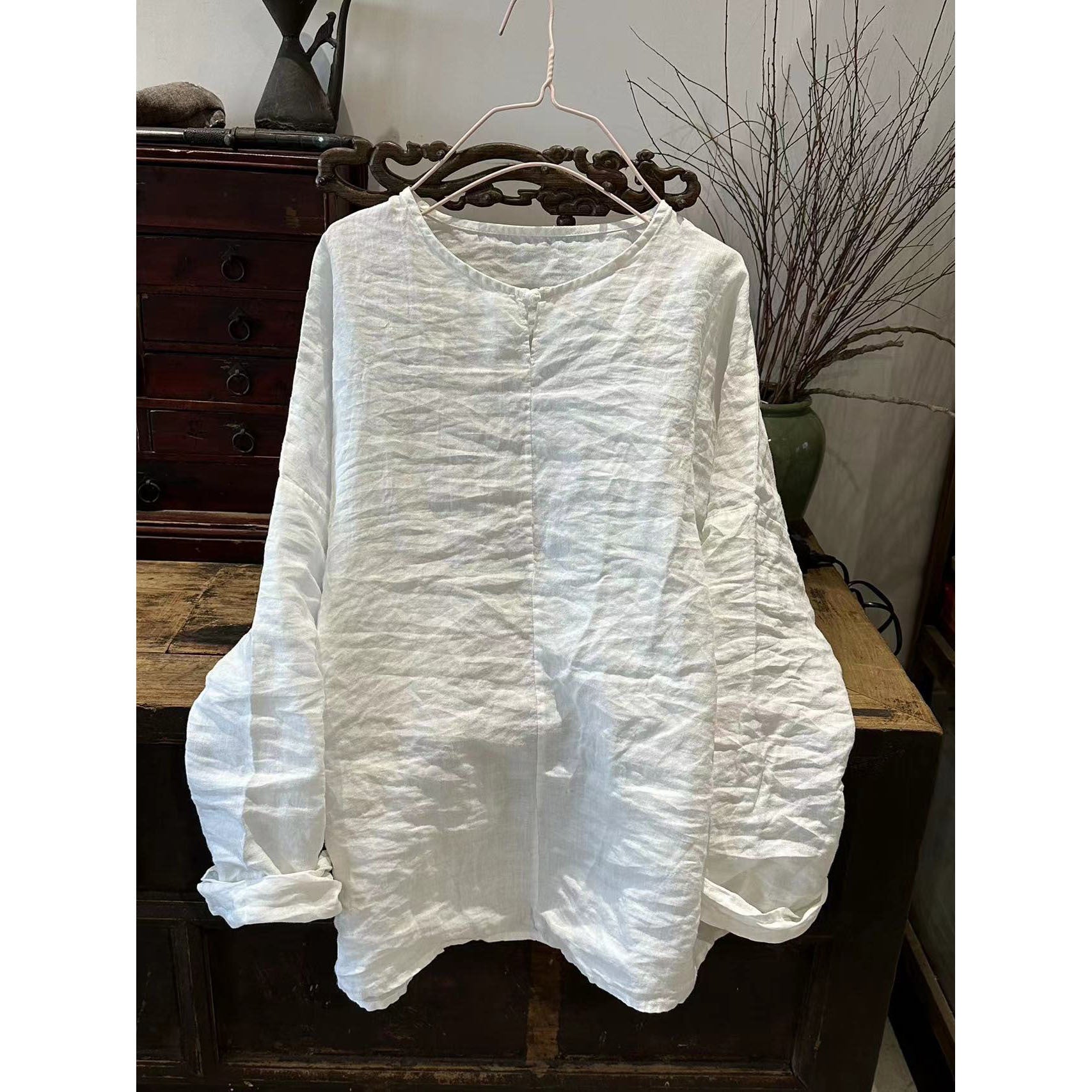 2025 22/12 Winter Solstice/Early Spring Simple Literary Thick Ramie Pullover Solid Color Shoulder Shirt