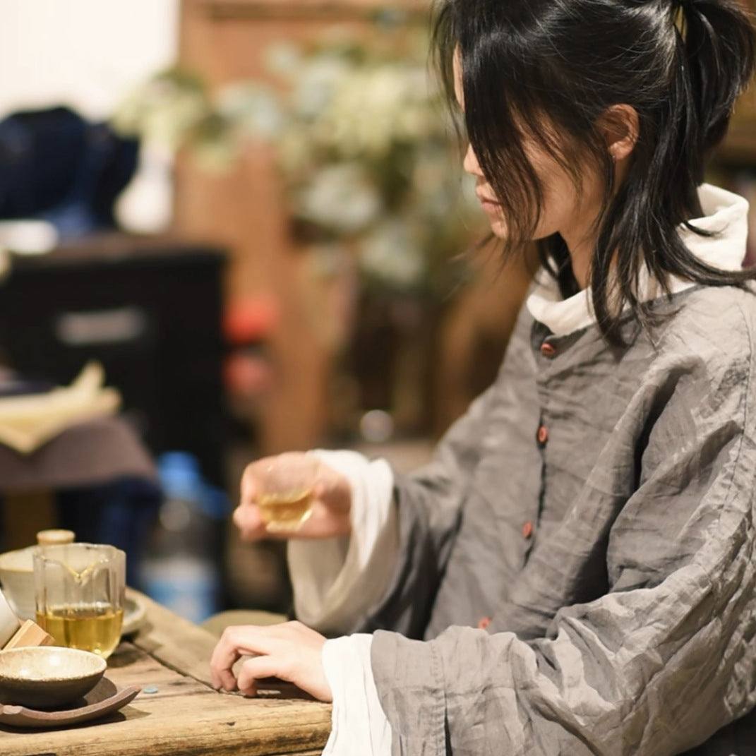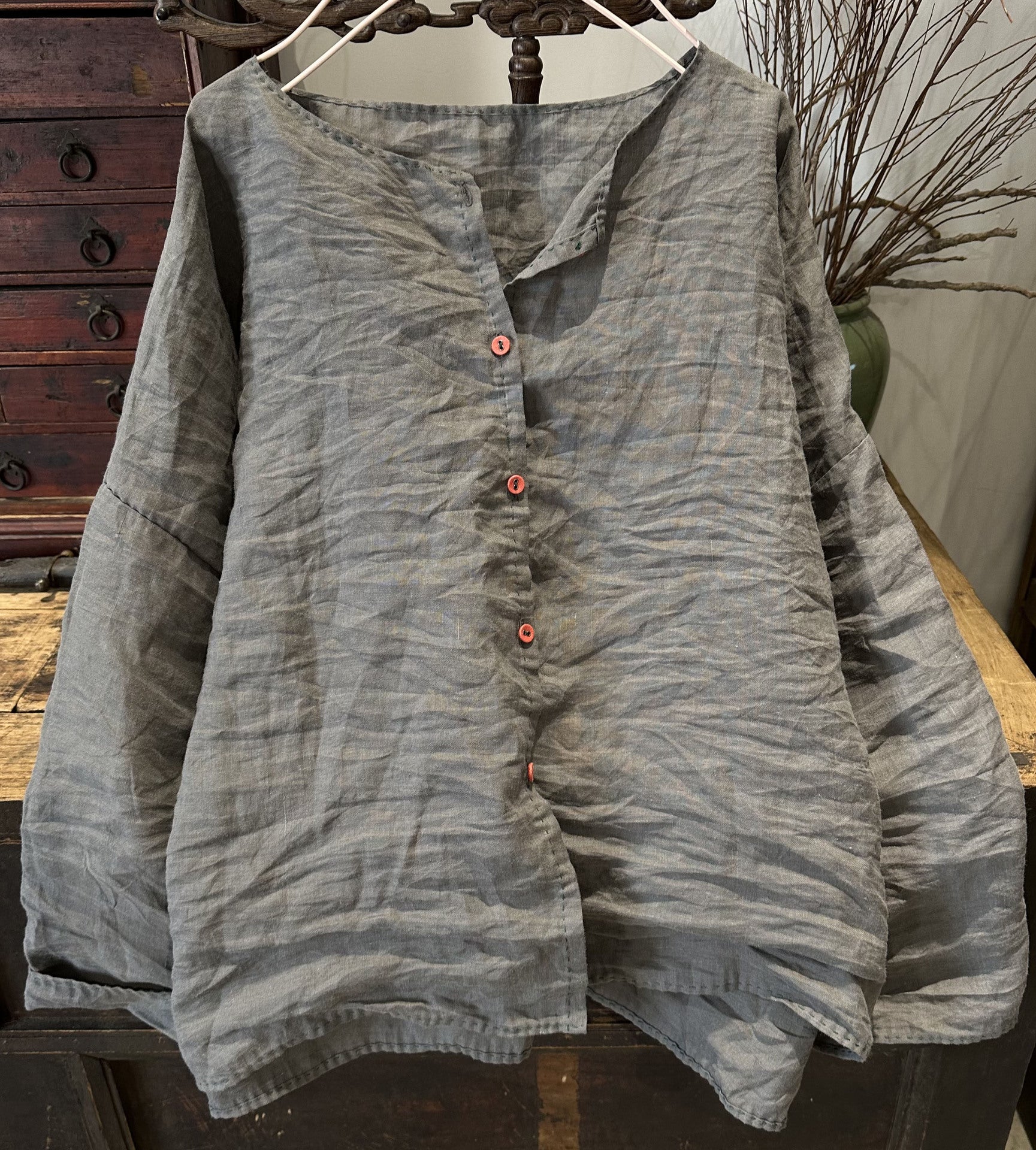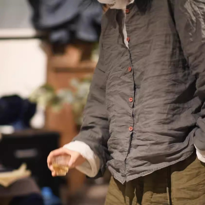 2025 22/12 Xiaoqiu, early spring literary and retro ramie cardigan collarless button-down shoulder shirt