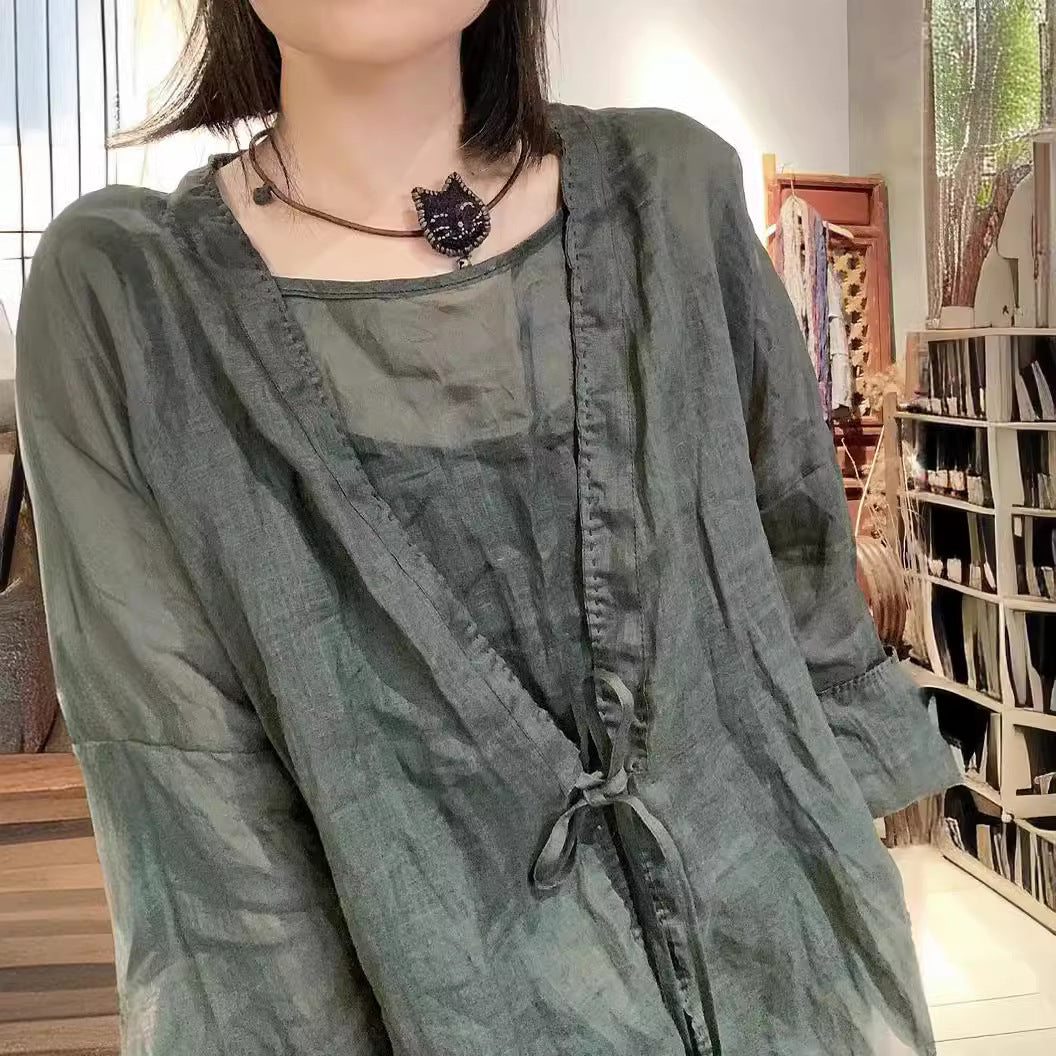 2025 22/4 constant tone, simple casual and light ramie spring and summer sunscreen clothing, solid color outer shirt
