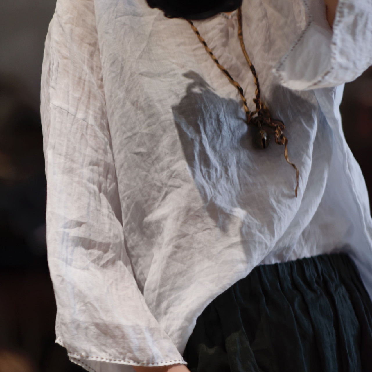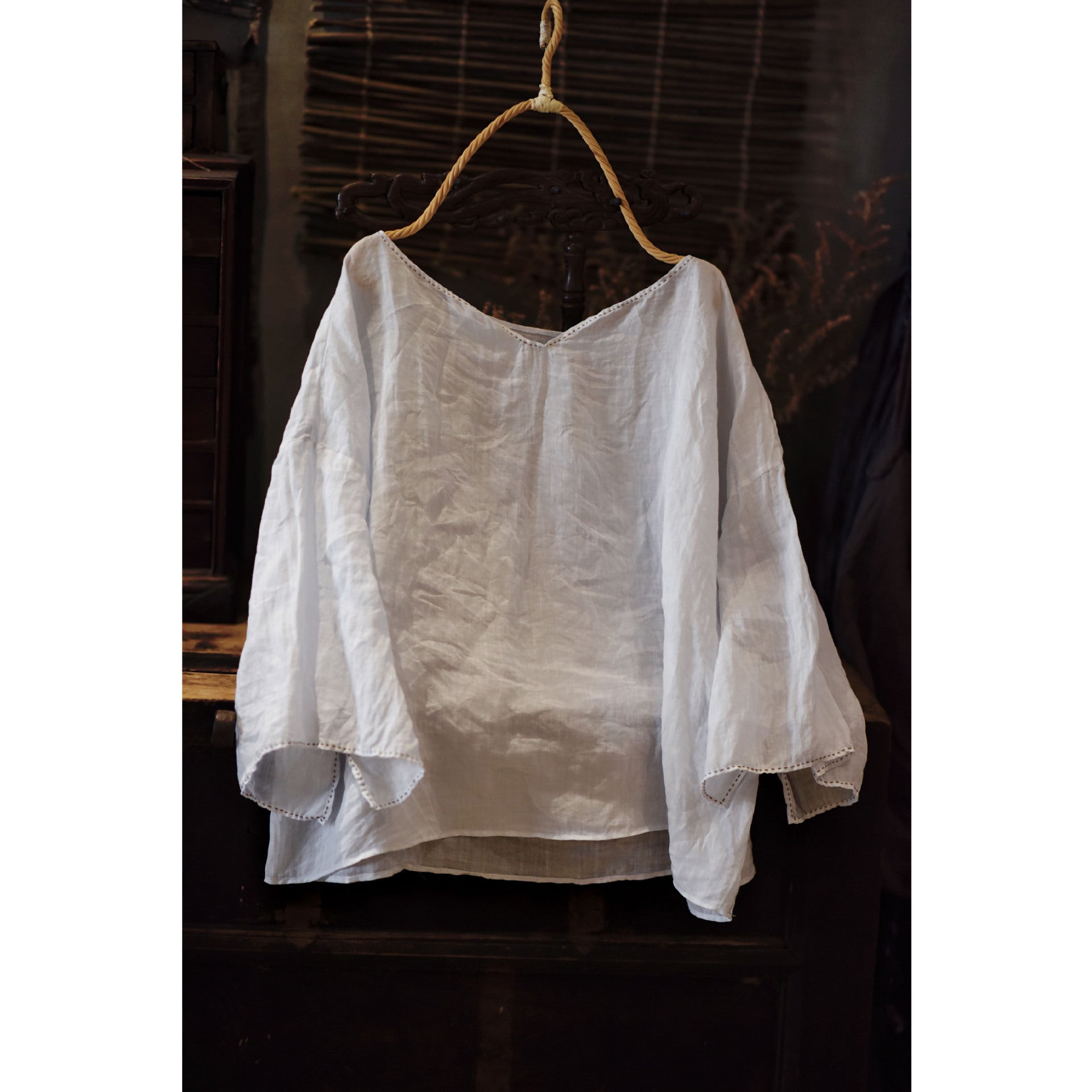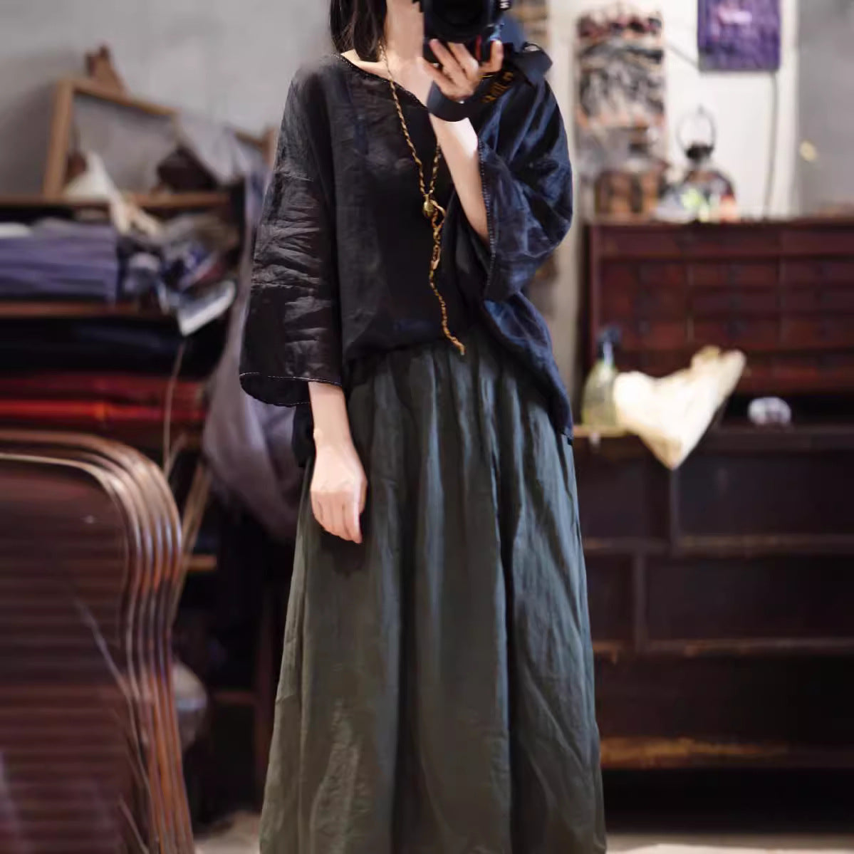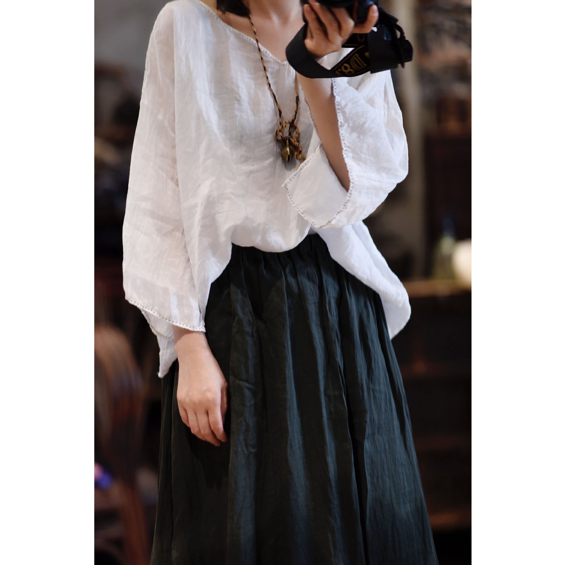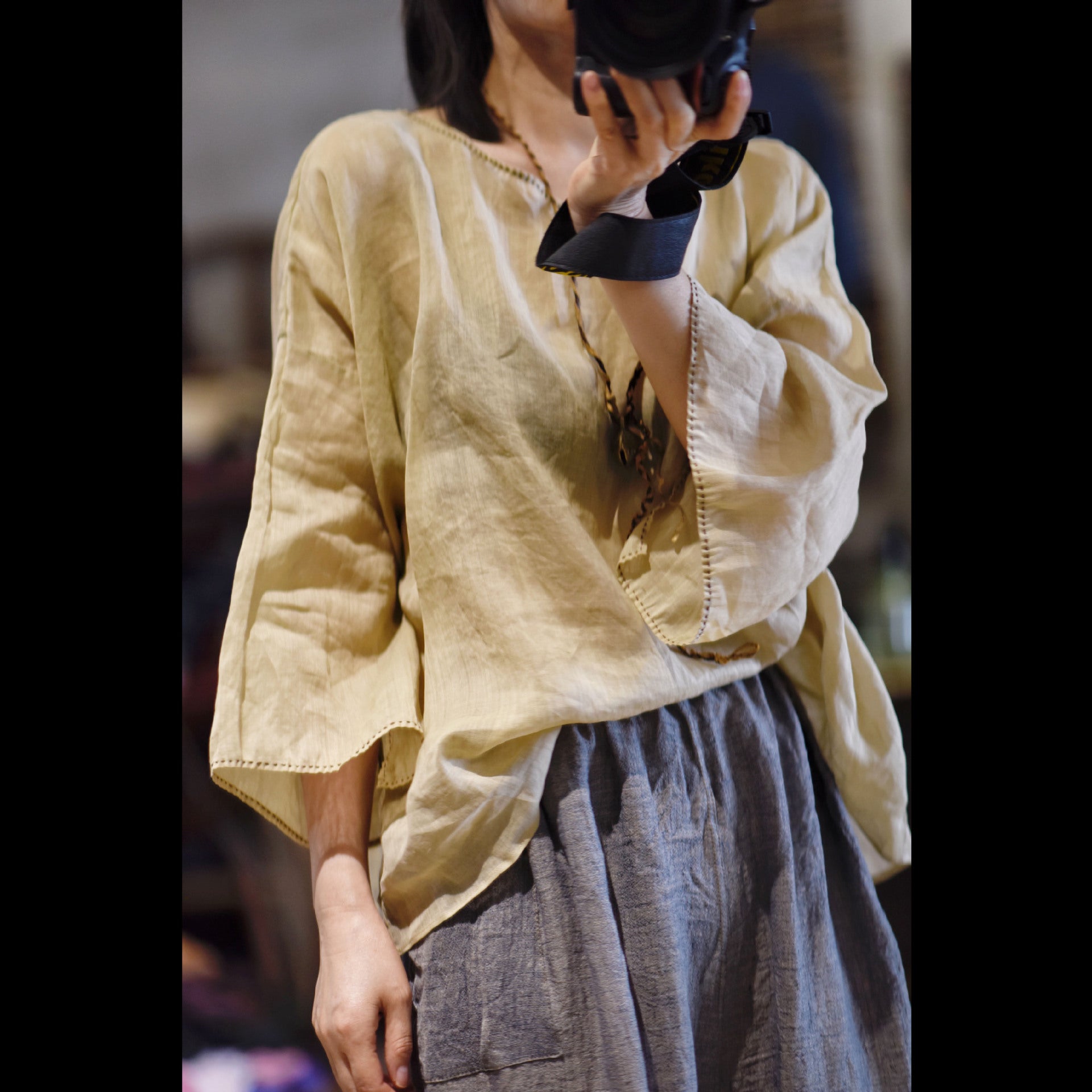 2025 22/6 small cigarettes, literary and casual high-count ramie light and breathable pullover, shoulder-length nine-quarter sleeve sunscreen short shirt