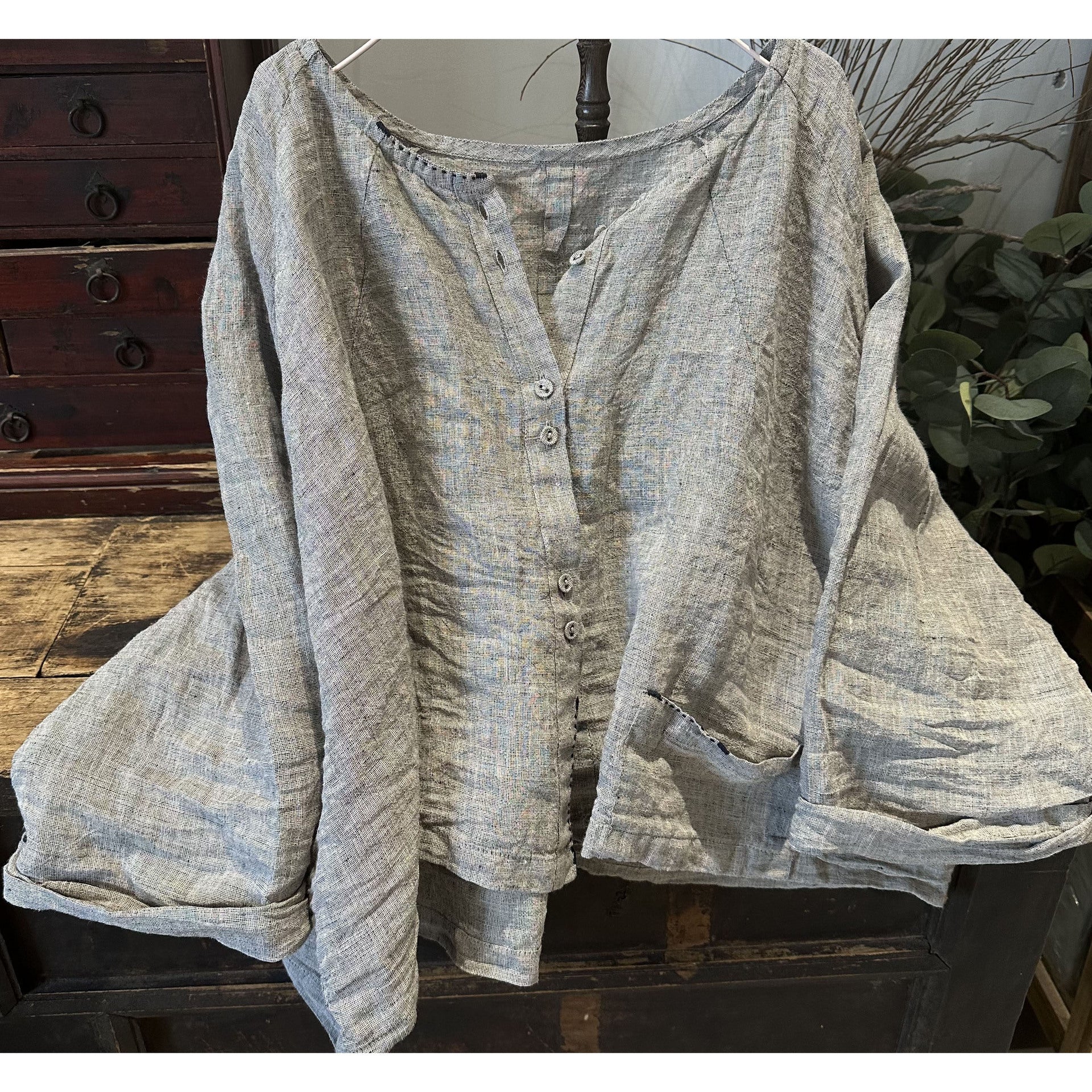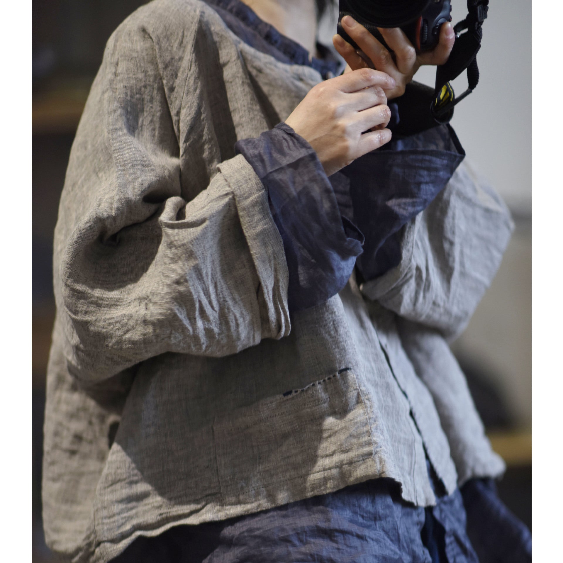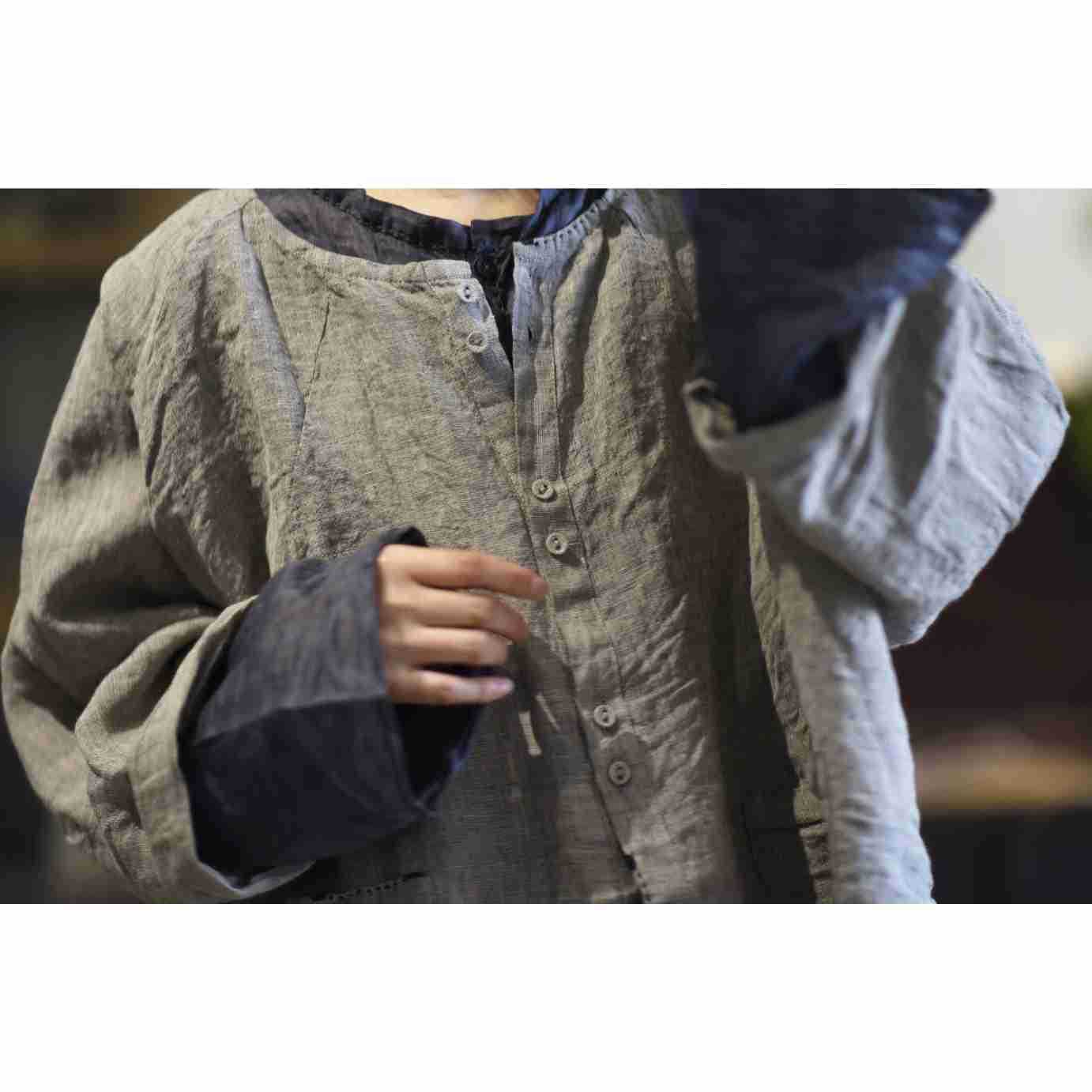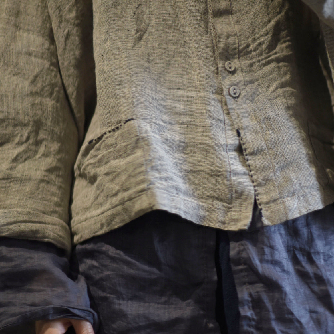 2025 23/2 Ah Sheng, literary and retro yarn-dyed linen cardigan, double-button collarless shirt