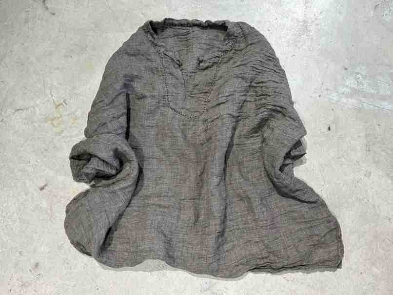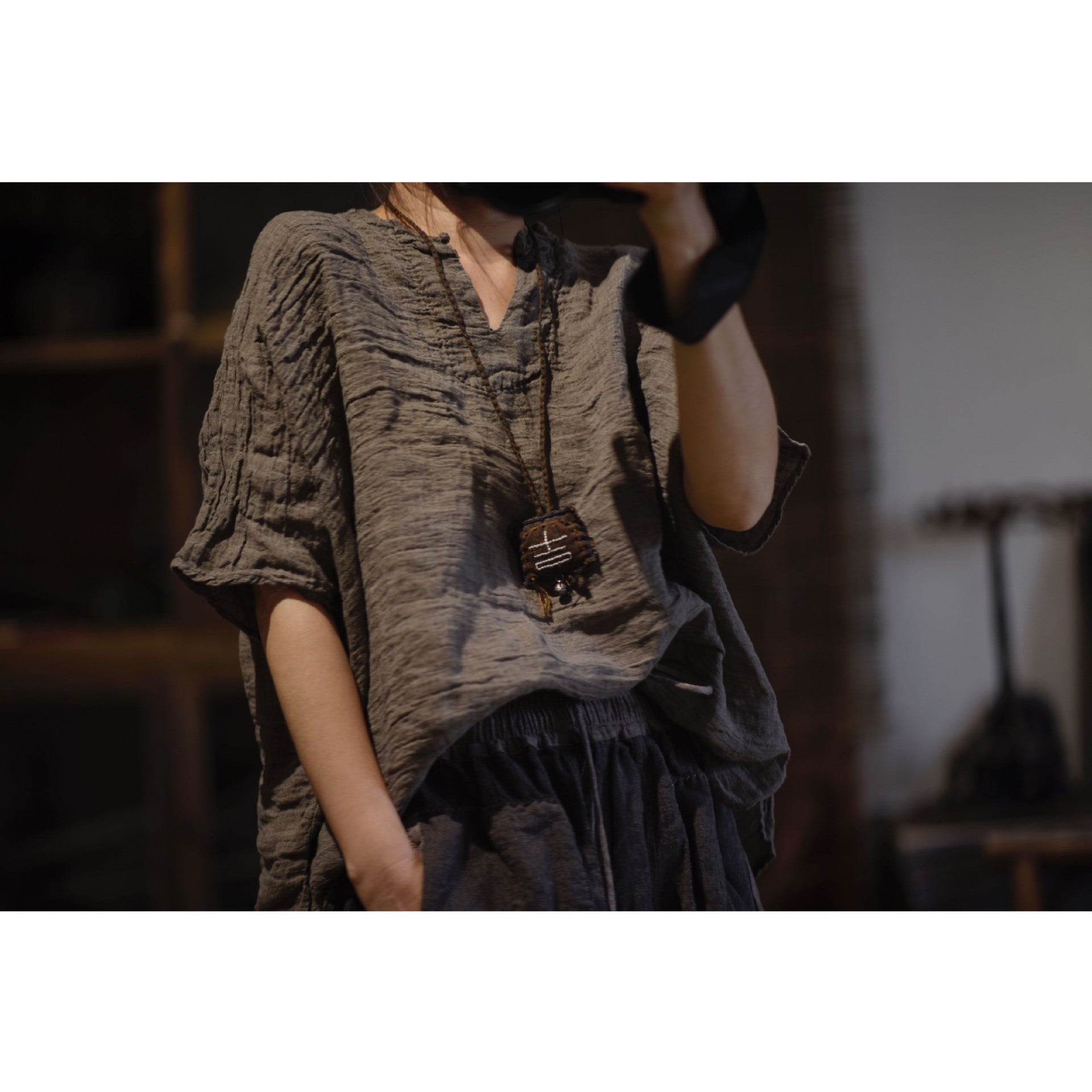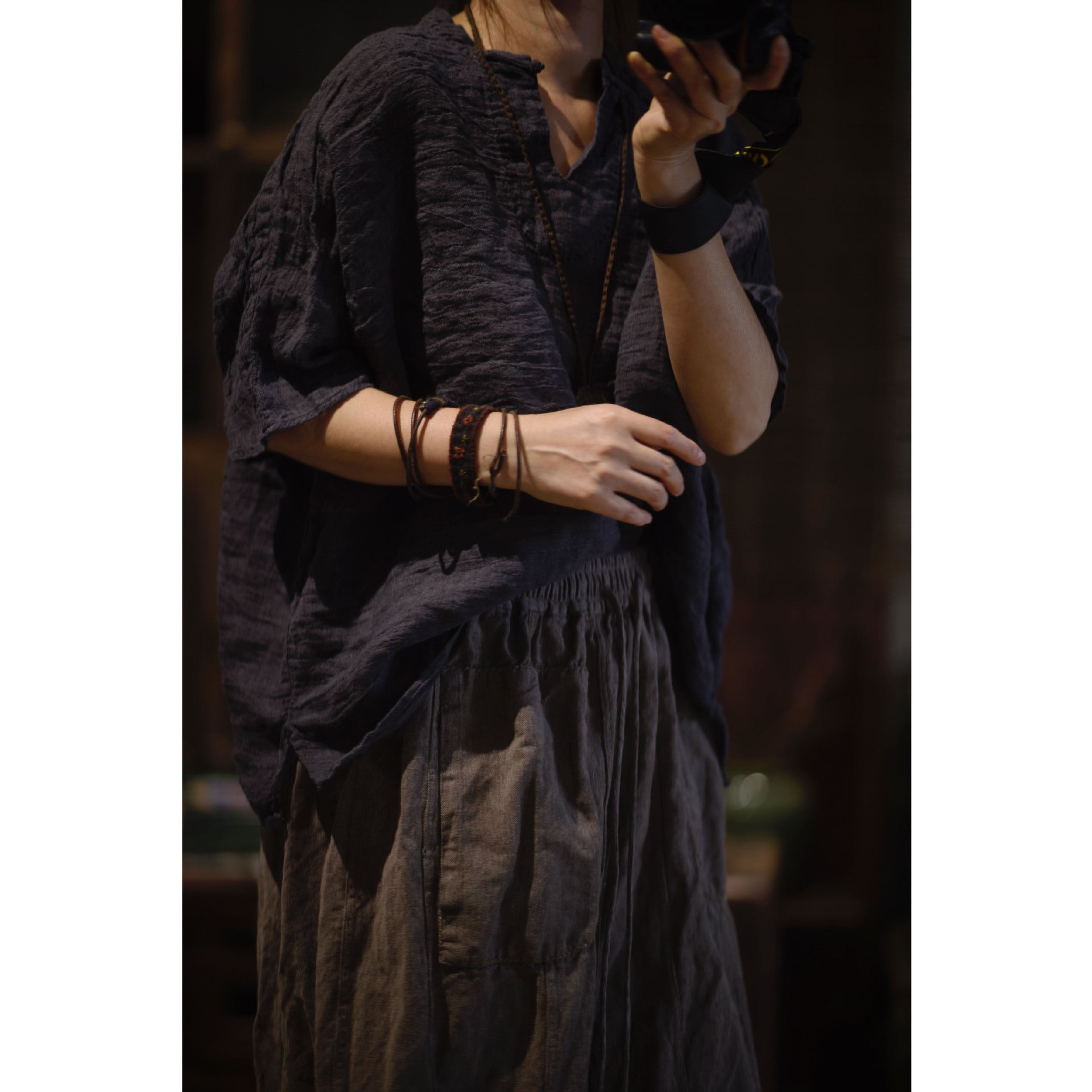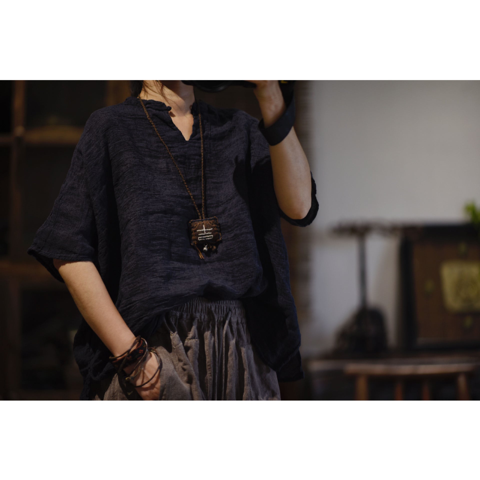 2025 23/6 Movie/Literary and retro texture yarn-dyed linen pullover stand-up collar buckle loose shoulder shirt