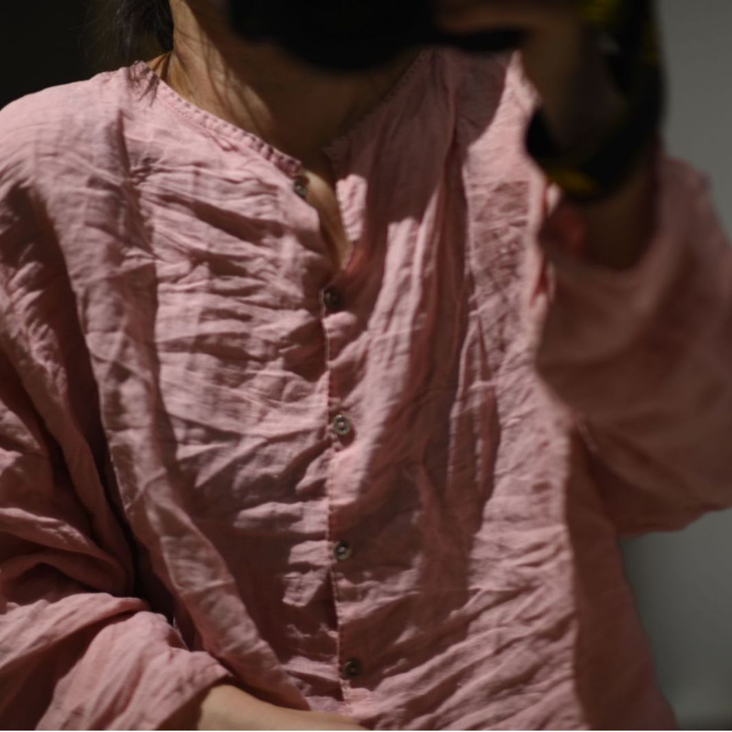 2025 23/7/Linen slave/Early autumn literary and retro soft waxy washed linen cardigan shoulder loose shirt
