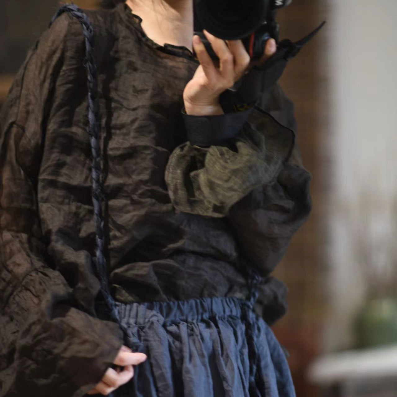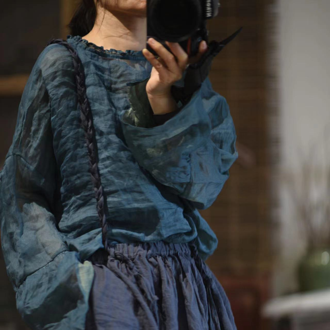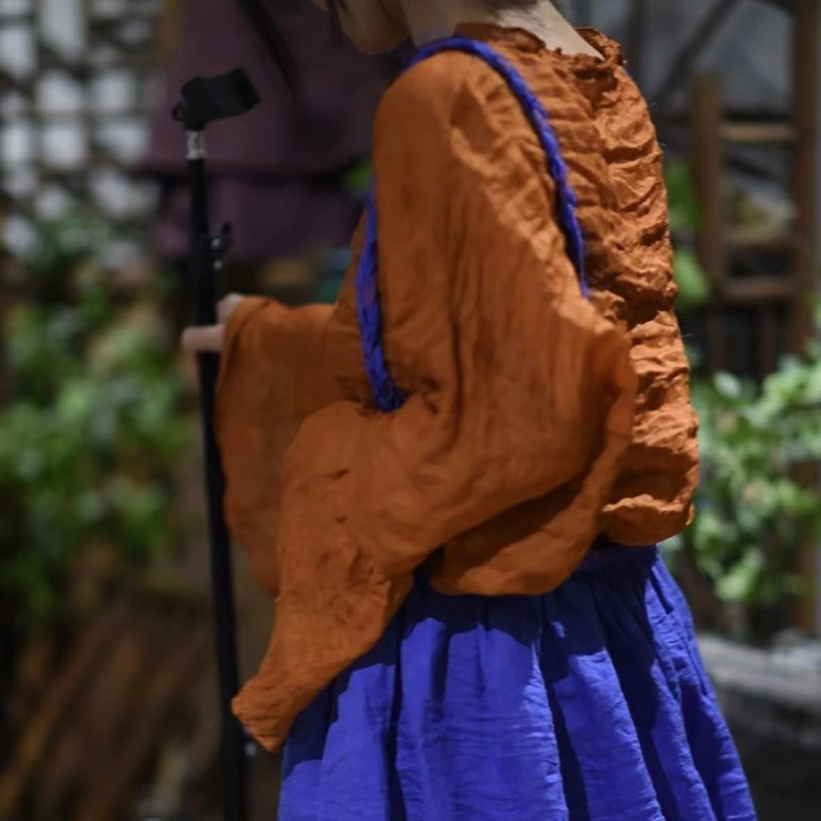 2025 24/3 SN36 literary and sweet two-color ramie long-sleeved lotus leaf neck pullover sunscreen shirt
