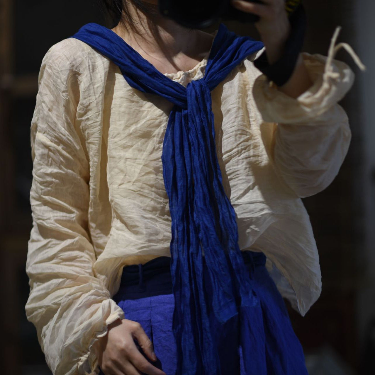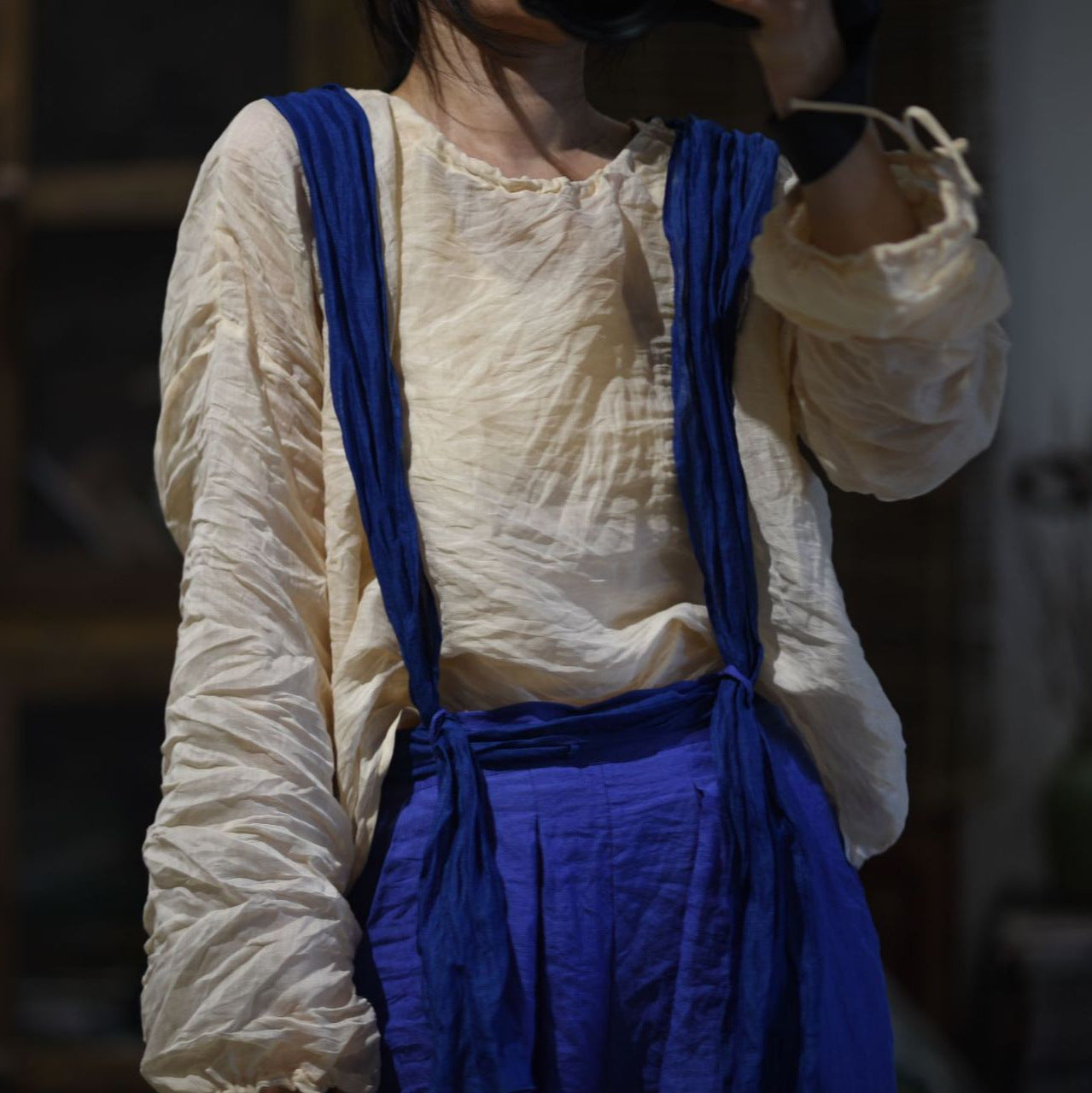 2025 24/3 SN43 spring literary and artistic versatile high-count ramie hand-buckled national style pullover linen shirt