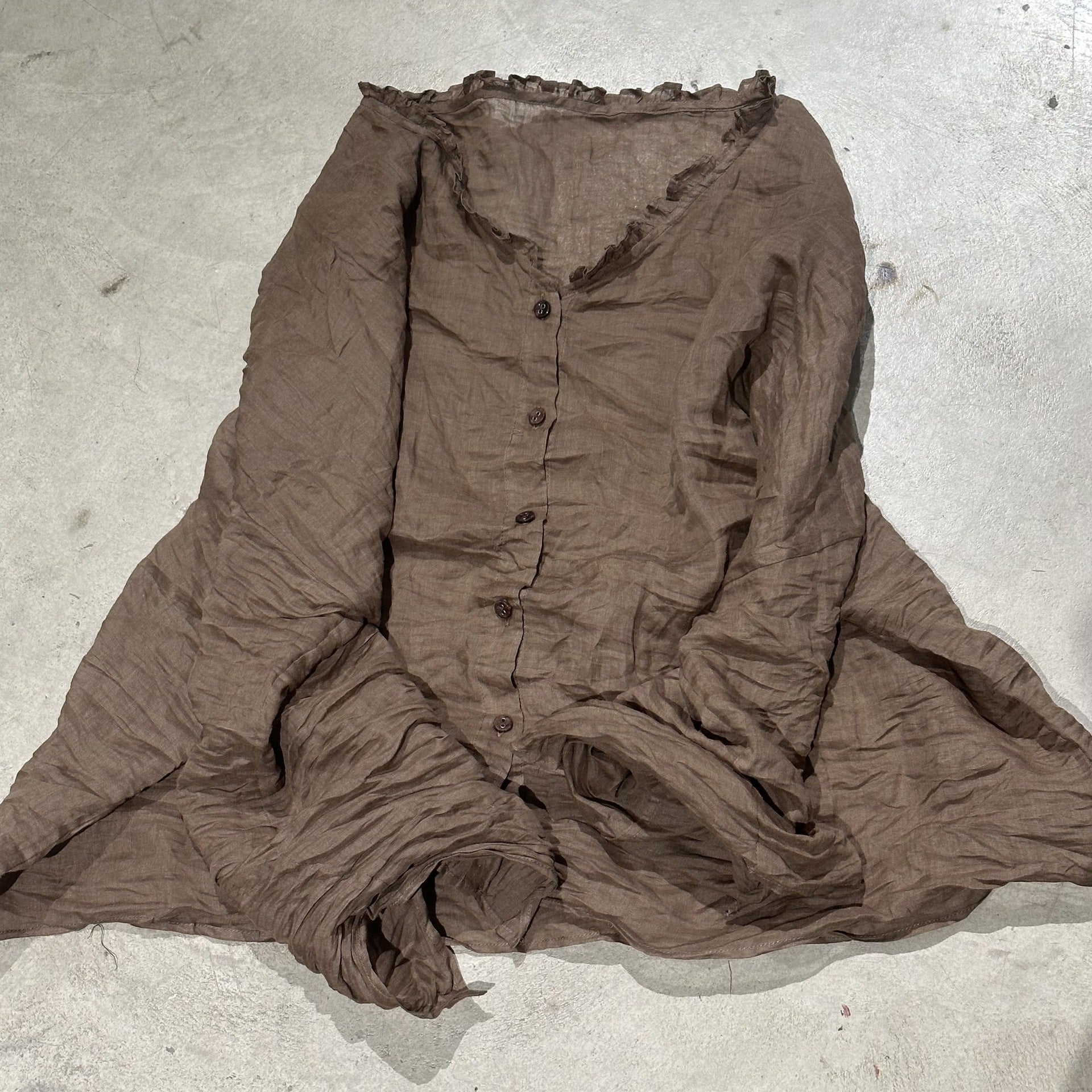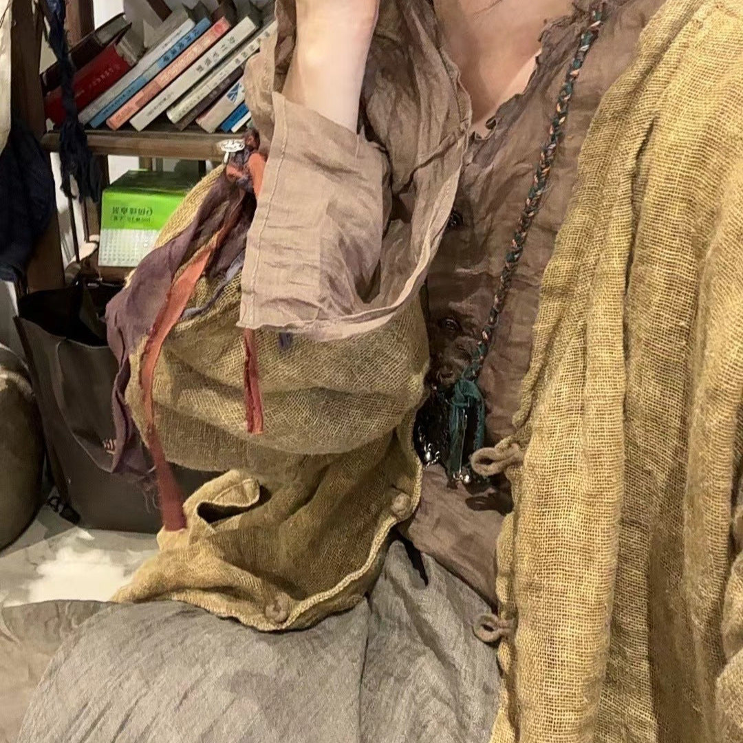 2025 24/4 SN46 literary and casual lotus leaf collar versatile long-sleeved high-count ramie cardigan sunscreen shirt