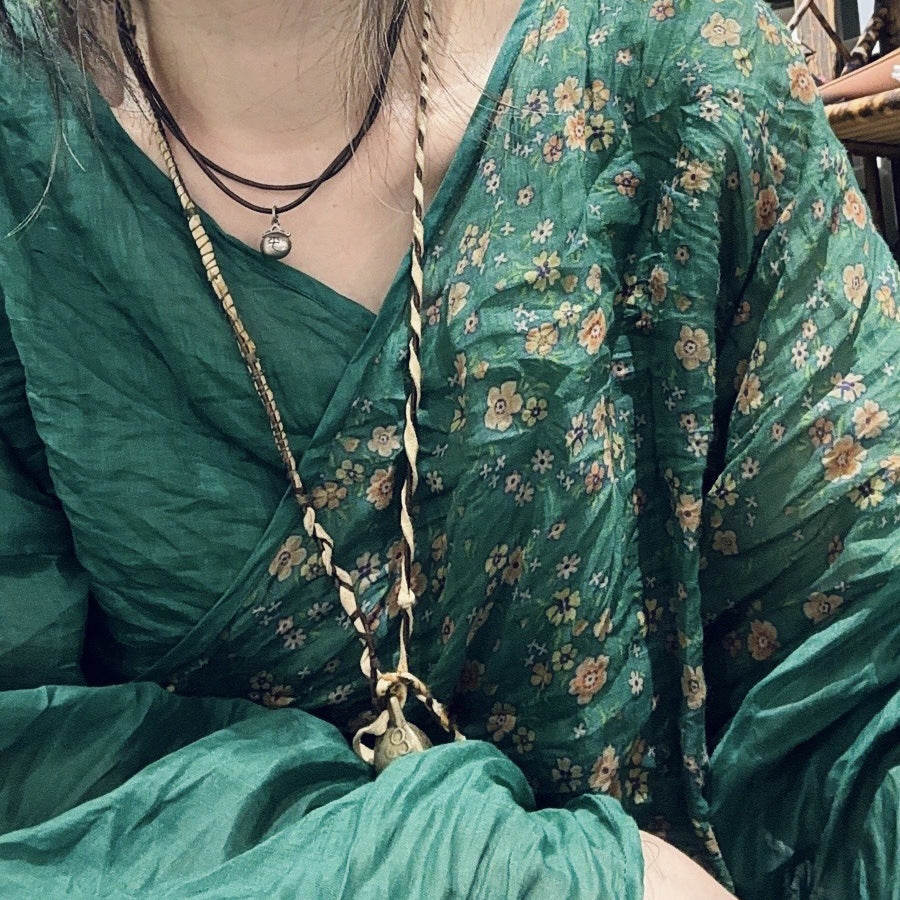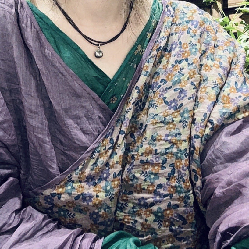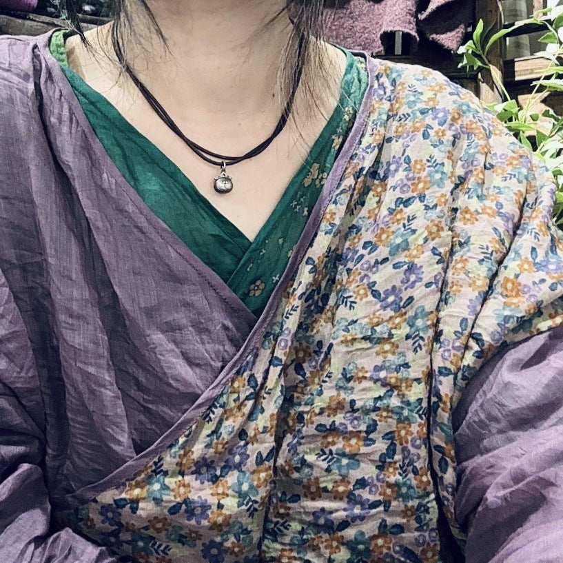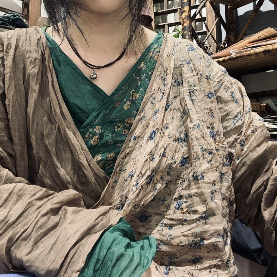 2025 24/4 SN48 flowers, literary and retro ramie printed diagonal placket lace-up shirt cardigan