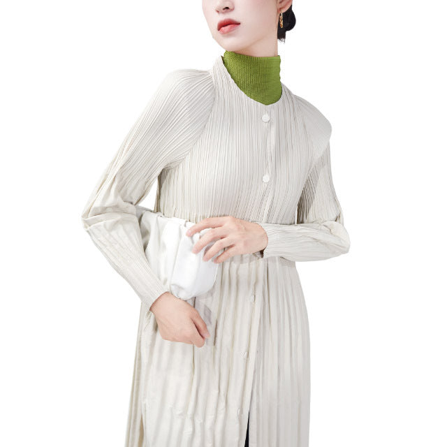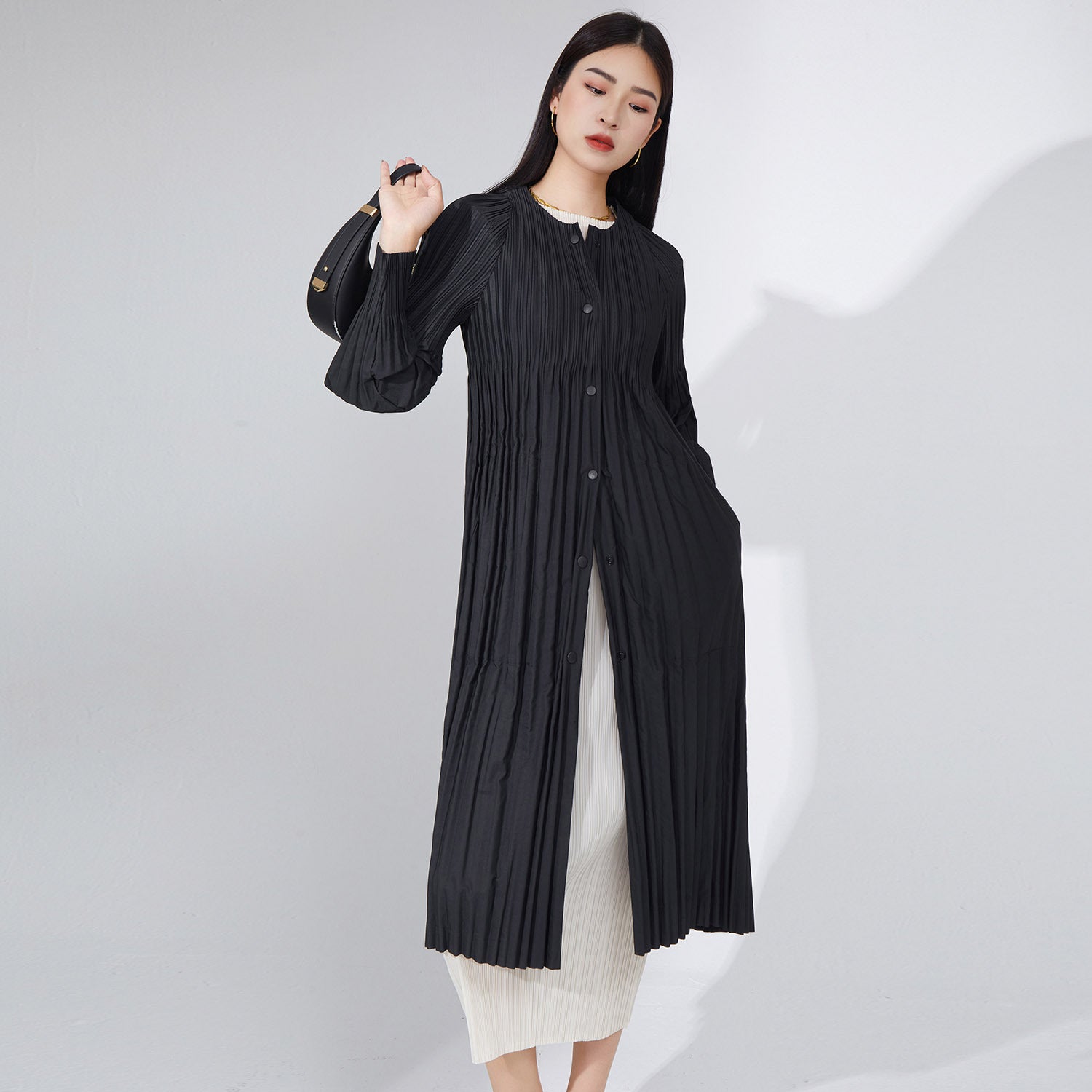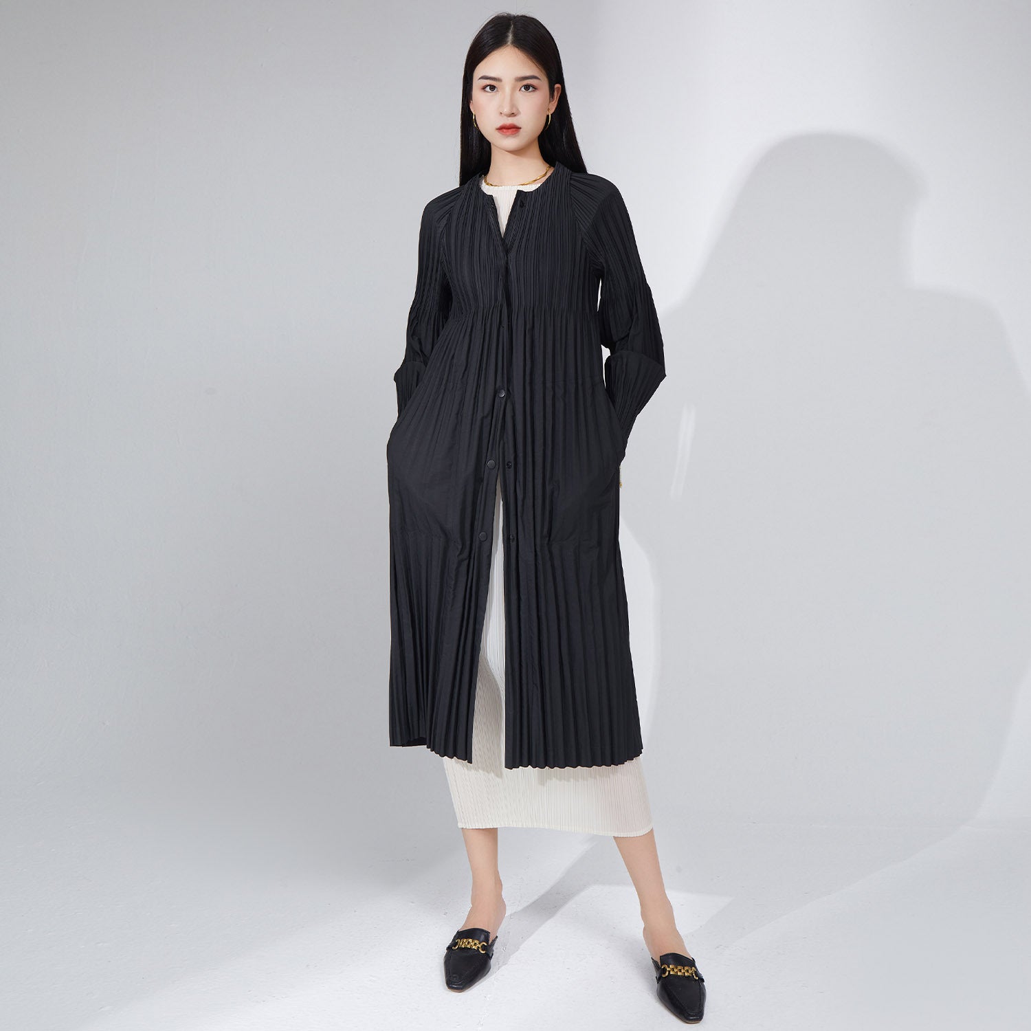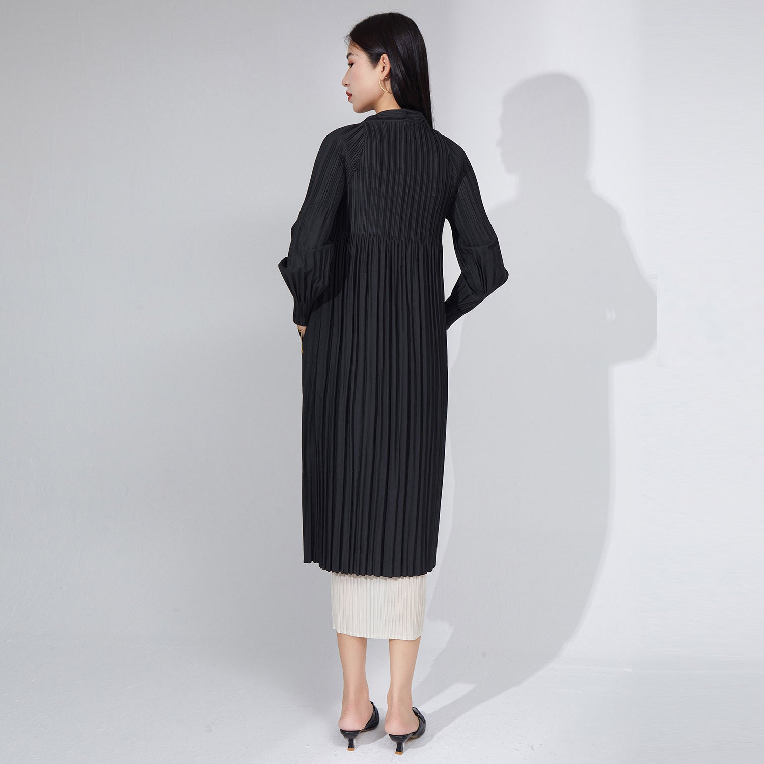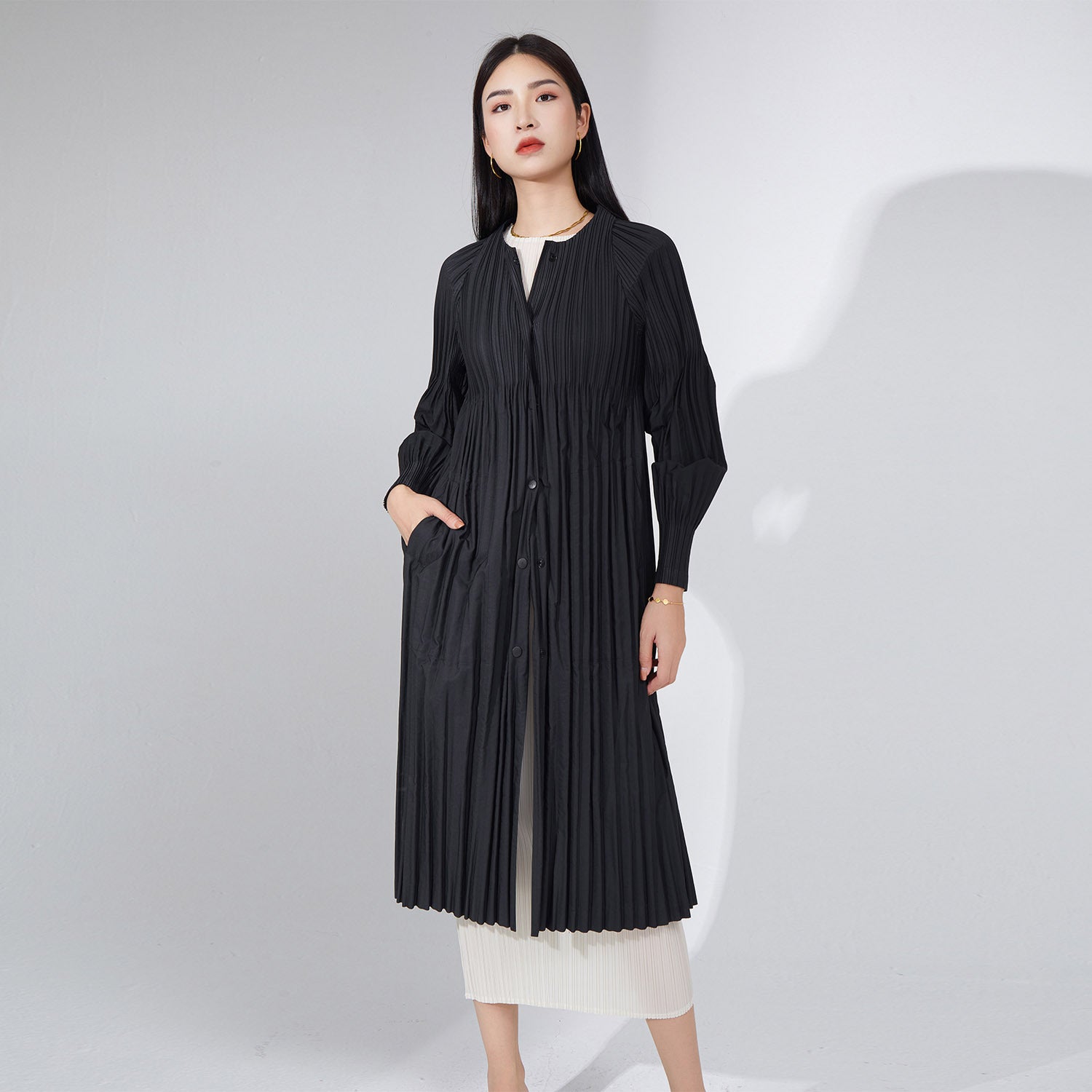 2025 black coat women's simple and versatile high-end pleated trench coat women's medium and long autumn new loose coat