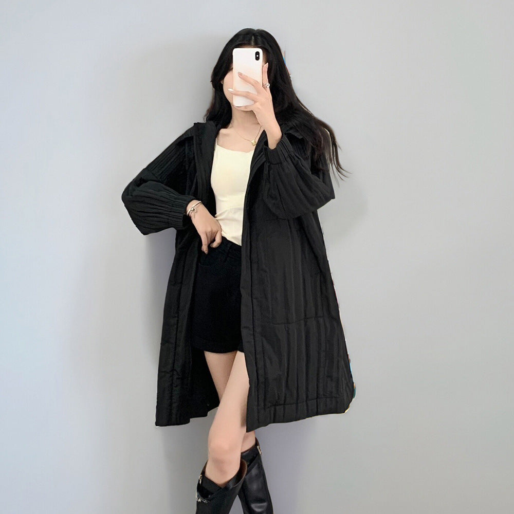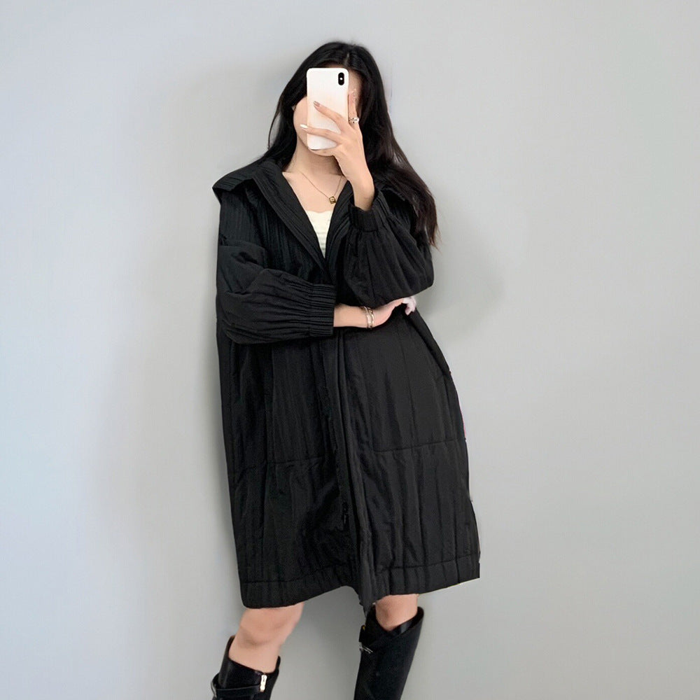 2025 Cotton jacket down jacket women's high-end women's small medium and long pleated new loose versatile pleated cotton coat
