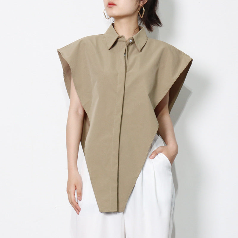 2025 Design sense inverted triangle irregular women's clothing summer new multi-color fashion personalized cut lapel shirt women