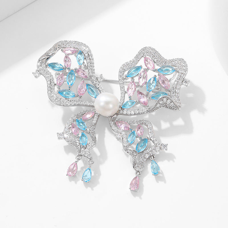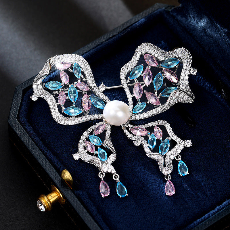 2025 High-end luxury zircon butterfly brooch freshwater pearl women's jewelry coat suit accessories dinner corsage
