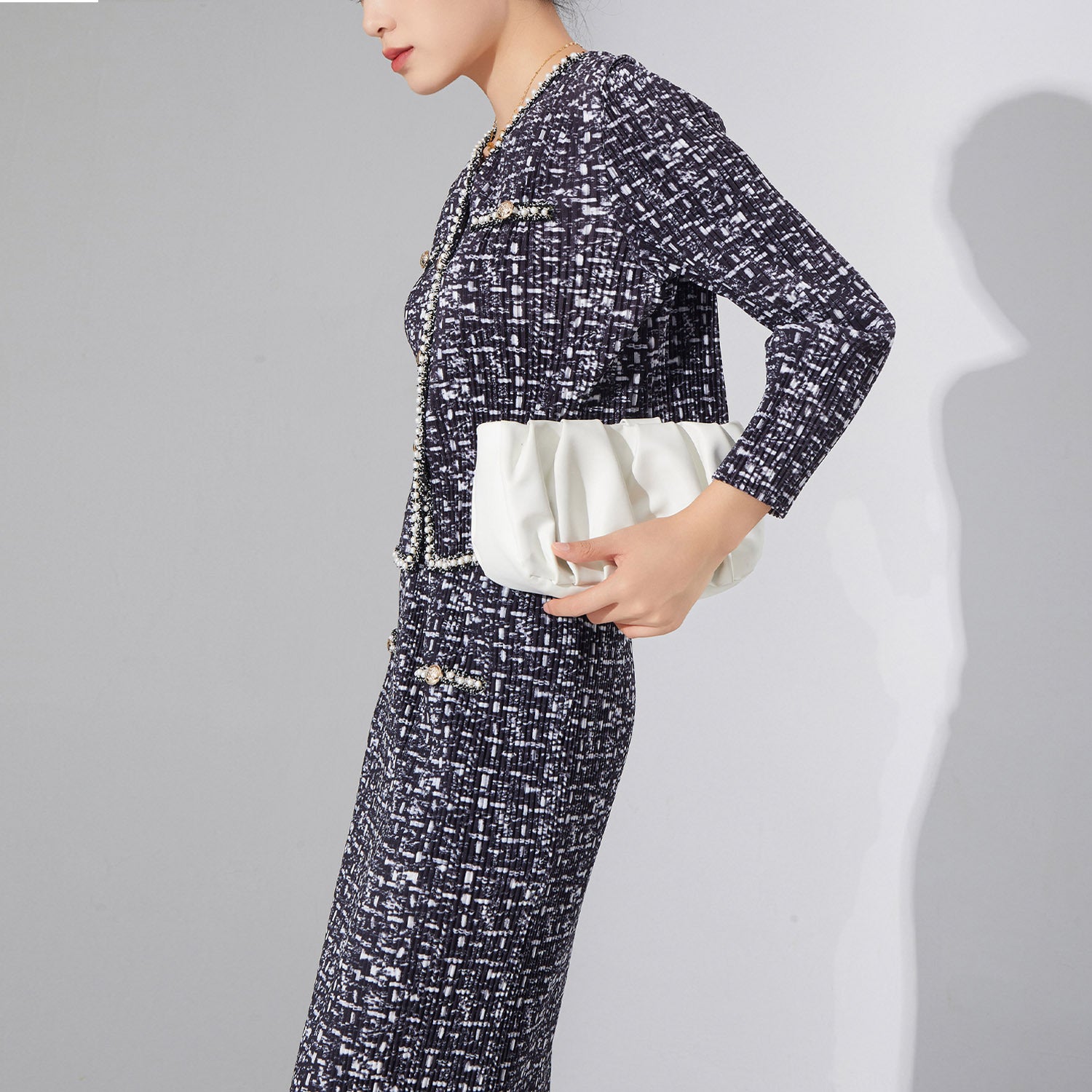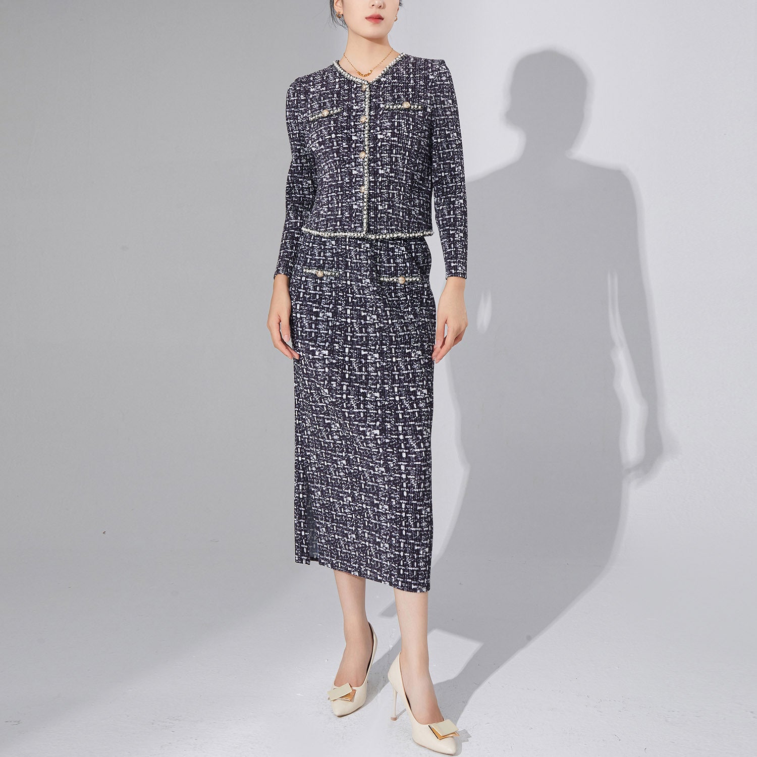 2025 High-end women's clothing Xiaoxiangfeng suit temperament cardigan jacket top medium and long split skirt pleated two-piece set