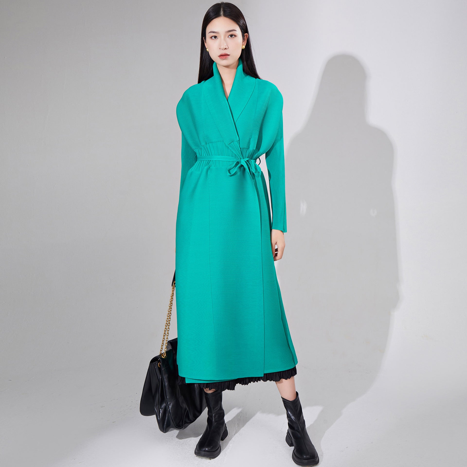 2025 OEM customization Popular trade brand women's clothing foundry extended trench coat women's pleated coat robe