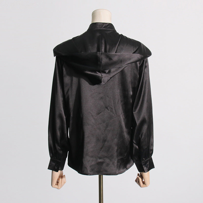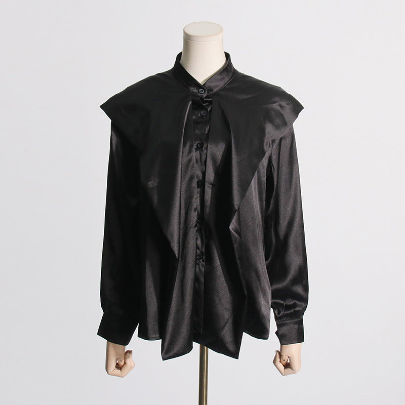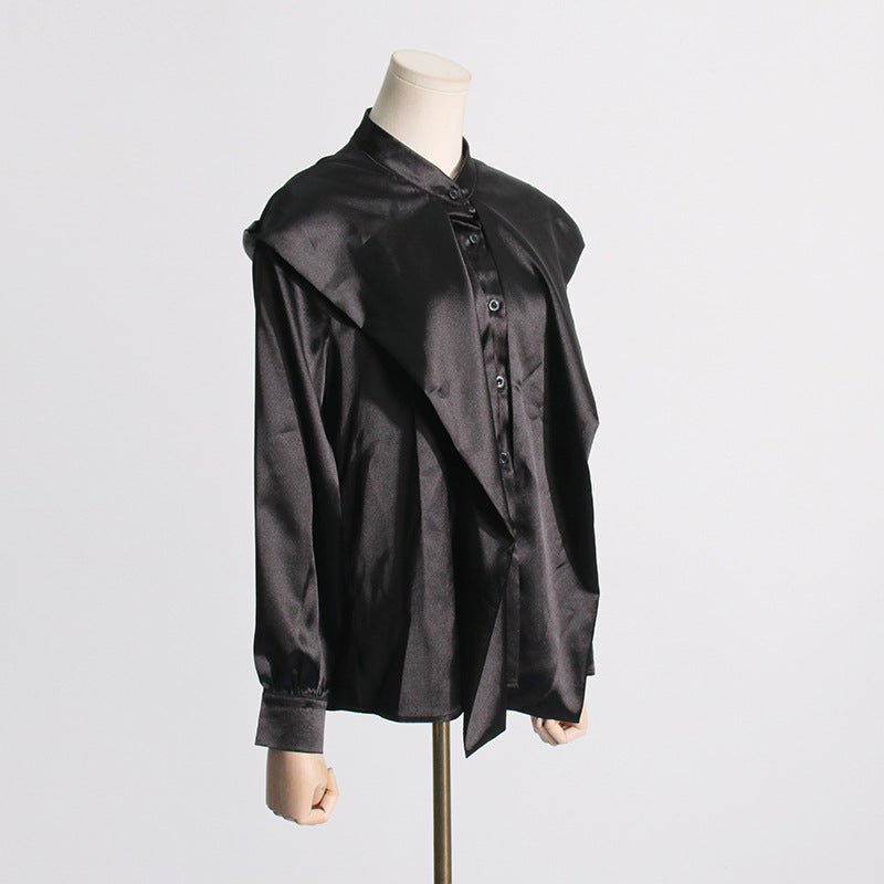 2025 Simple style top women's spring new temperament casual high sense long sleeve satin shirt clothing
