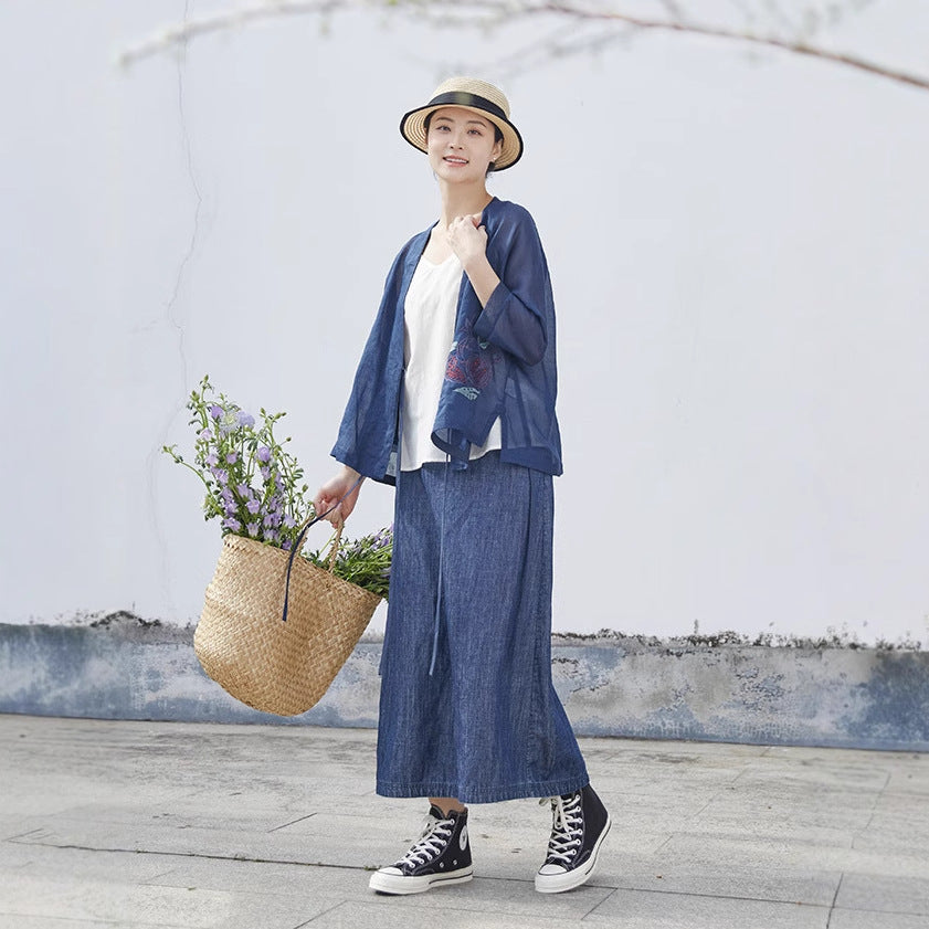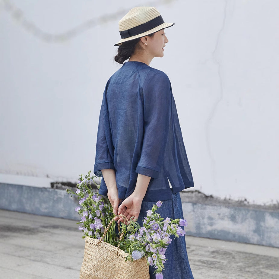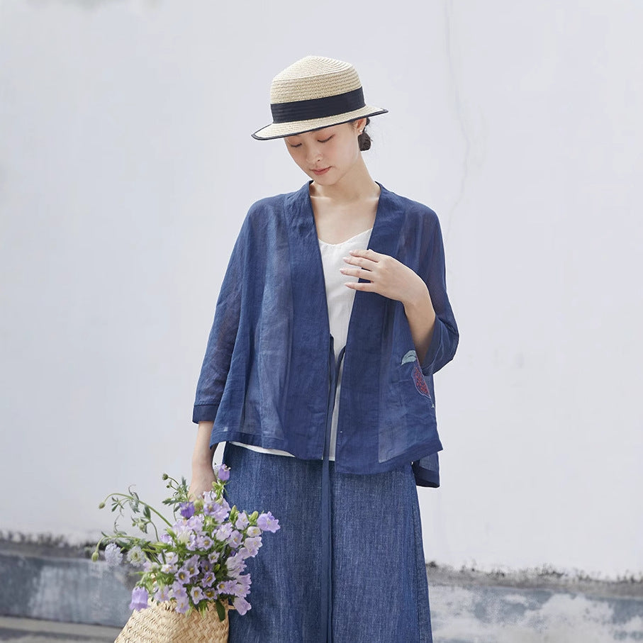 2025 spring and summer shirt ramie diagonal placket lace-up with hand-embroidered V-neck cardigan new Chinese top A0412