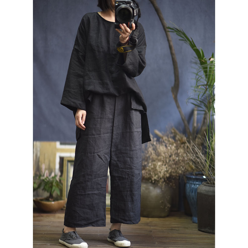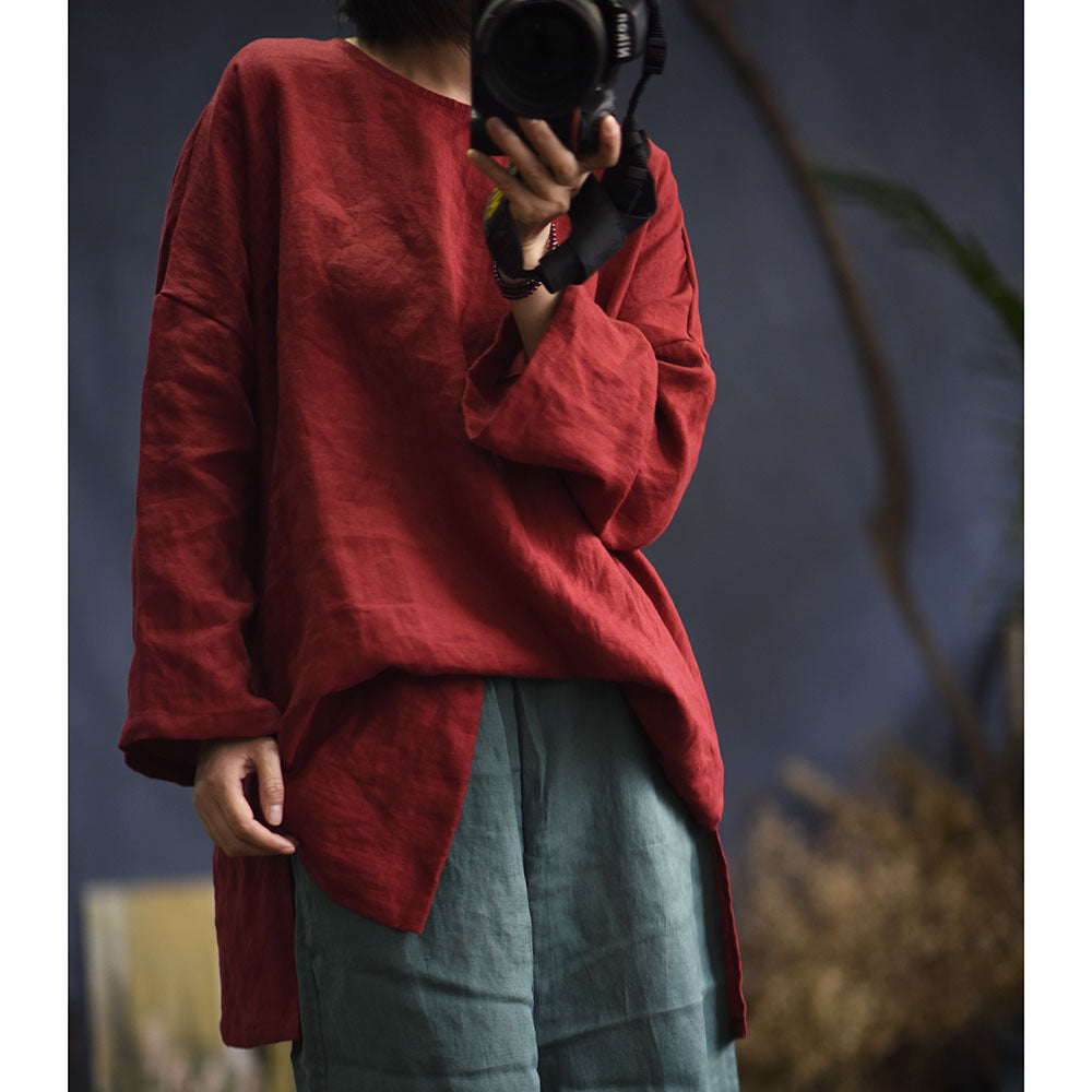 2025 Su Nian Weiyang, Autumn Zen/Cotton and Linen Retro Spring and Autumn Pullover Split Sleeve Hemp Shirt Women's Clothing