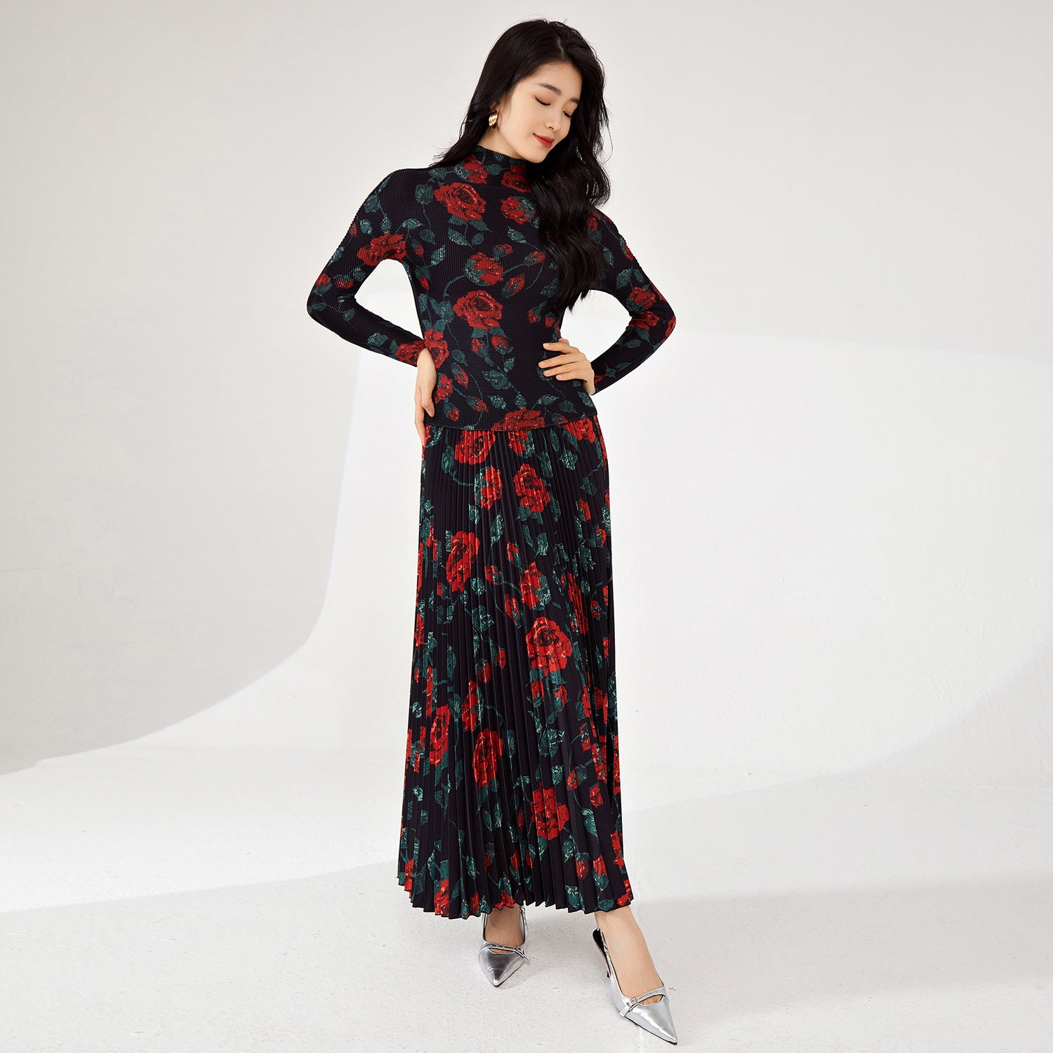 2025 suit 2025 early spring women's fashion high-end rose T-shirt top fashion skirt two-piece set
