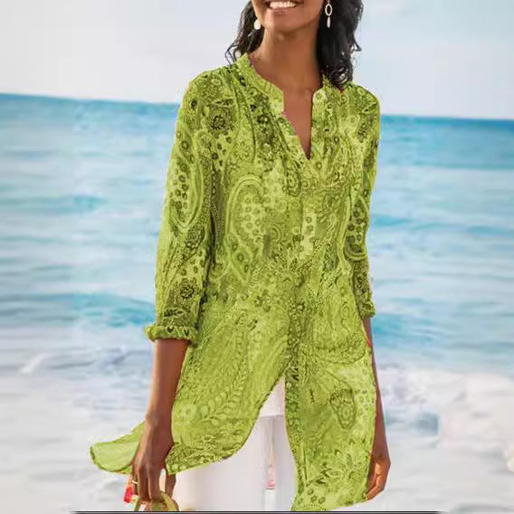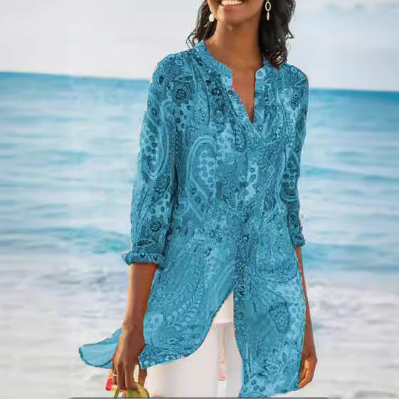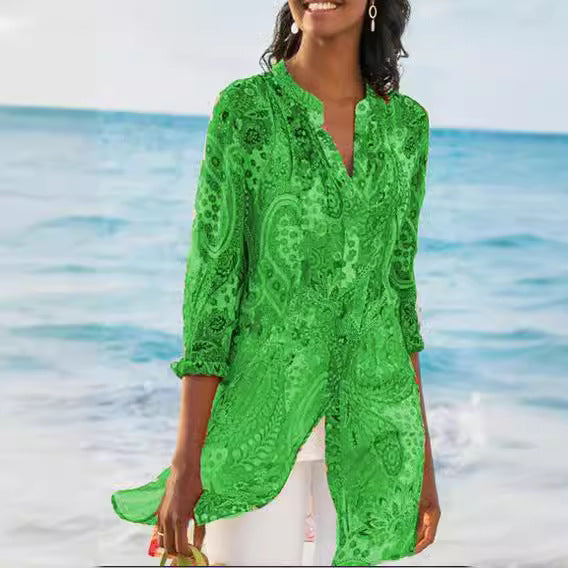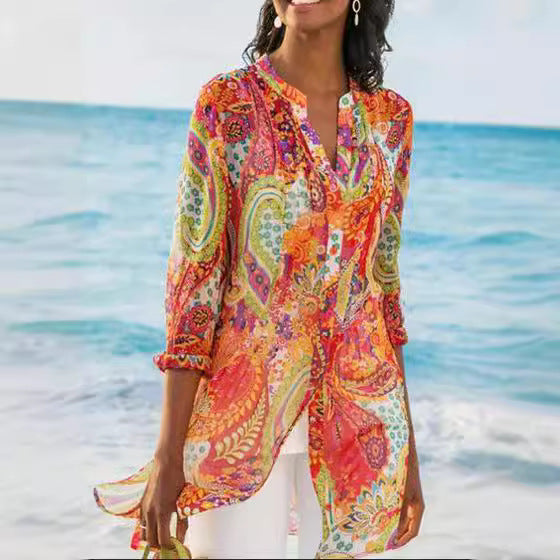 2025 summer new Popular trade women's clothing wish shirt bohemian vacation long shirt new