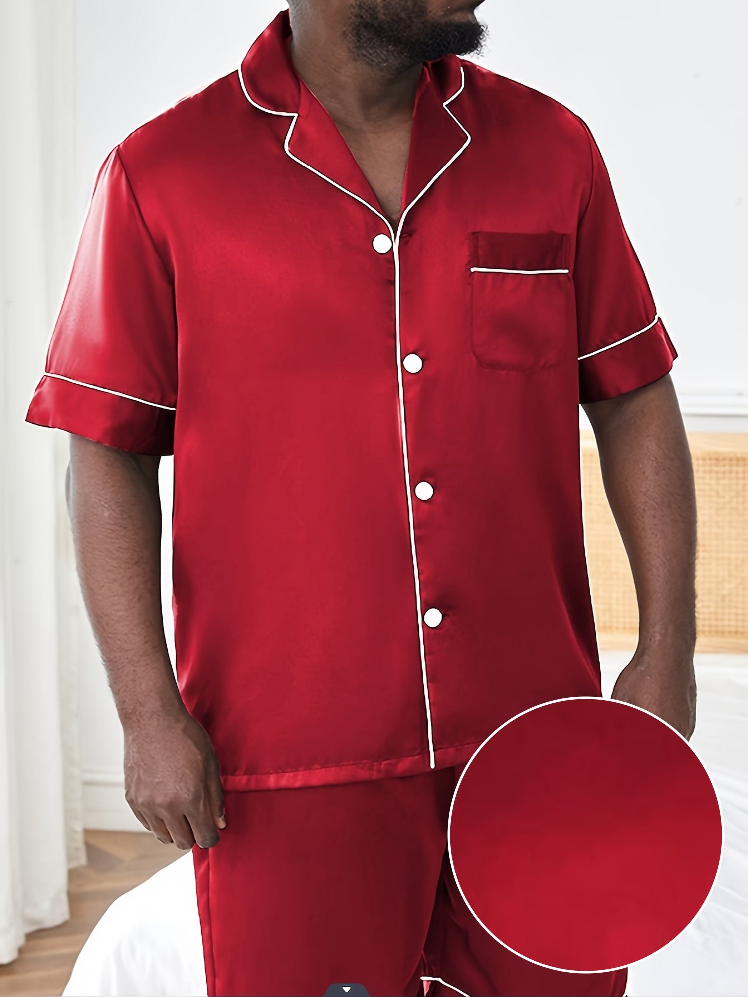 2PCS Plus Size Mens Luxury Sleepwear Set - Soft Short Sleeve Lapel Top & Pants - Lightweight, Summer-Ready, Comfortable Lounge Wear for Stylish Nights