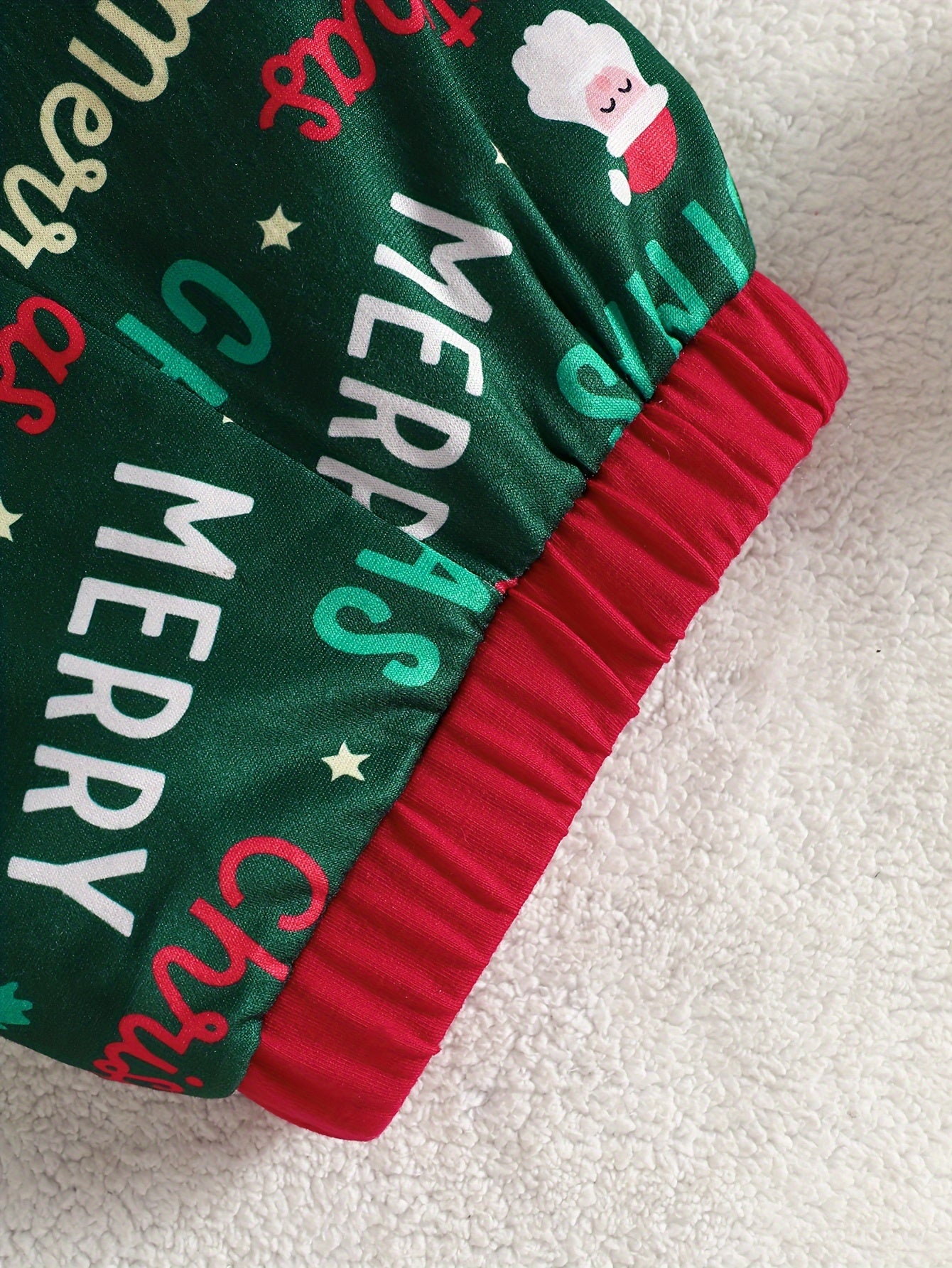 3pcs, My 1st Christmas Print Bodysuit, Pants & Cap For Baby Boys, Outdoor Cloth
