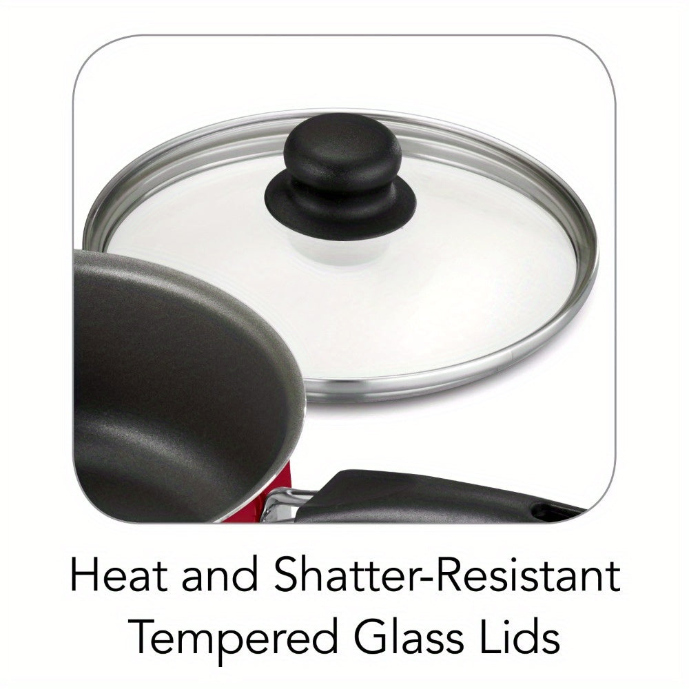 9-Piece Deluxe Cookware Set - Premium Non-stick Coating for Easy Food Release and Cleaning, Complete Cooking Solution for Cooking, Frying, Boiling, Steaming, and more - Vibrant Red Color