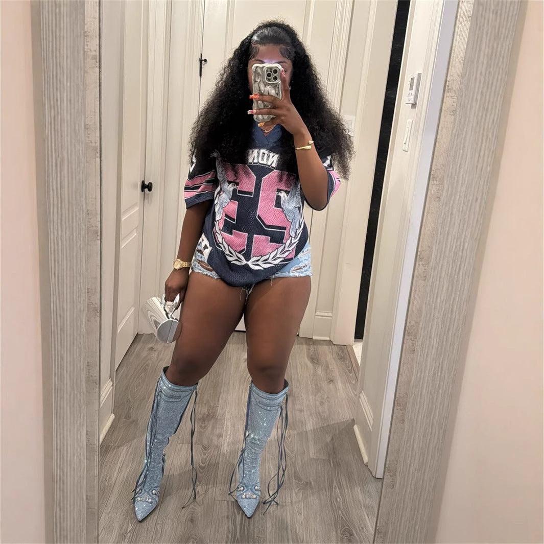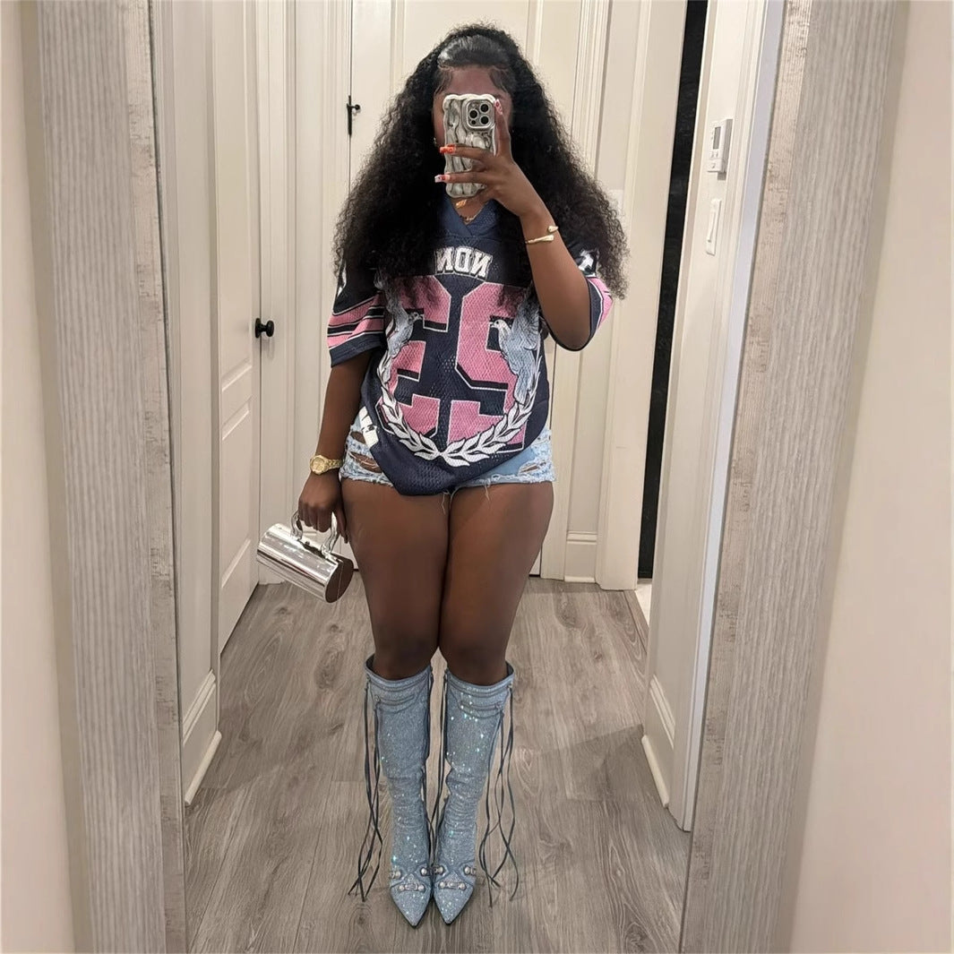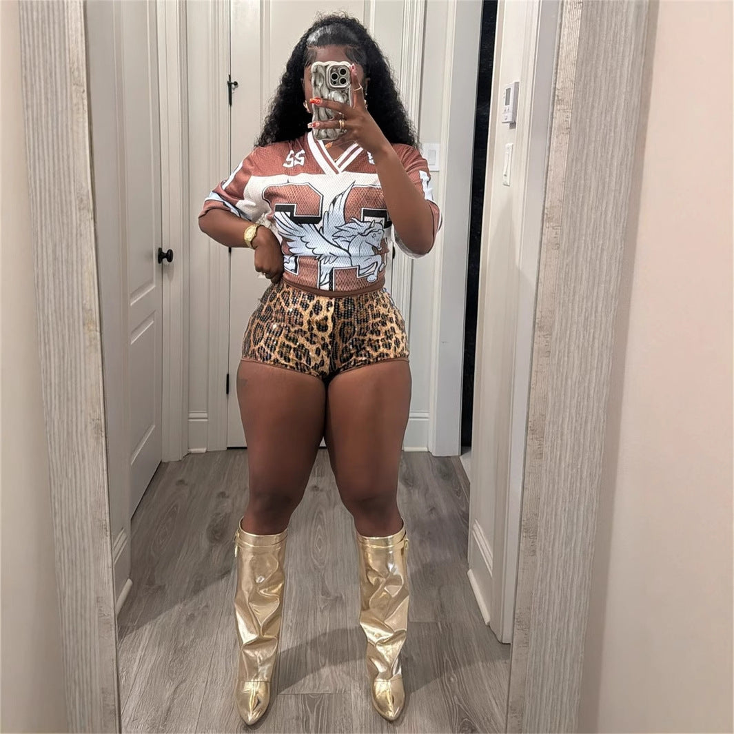 Autumn new New Popular trade loose casual versatile sports style fashion printing short-sleeved T-shirt top women