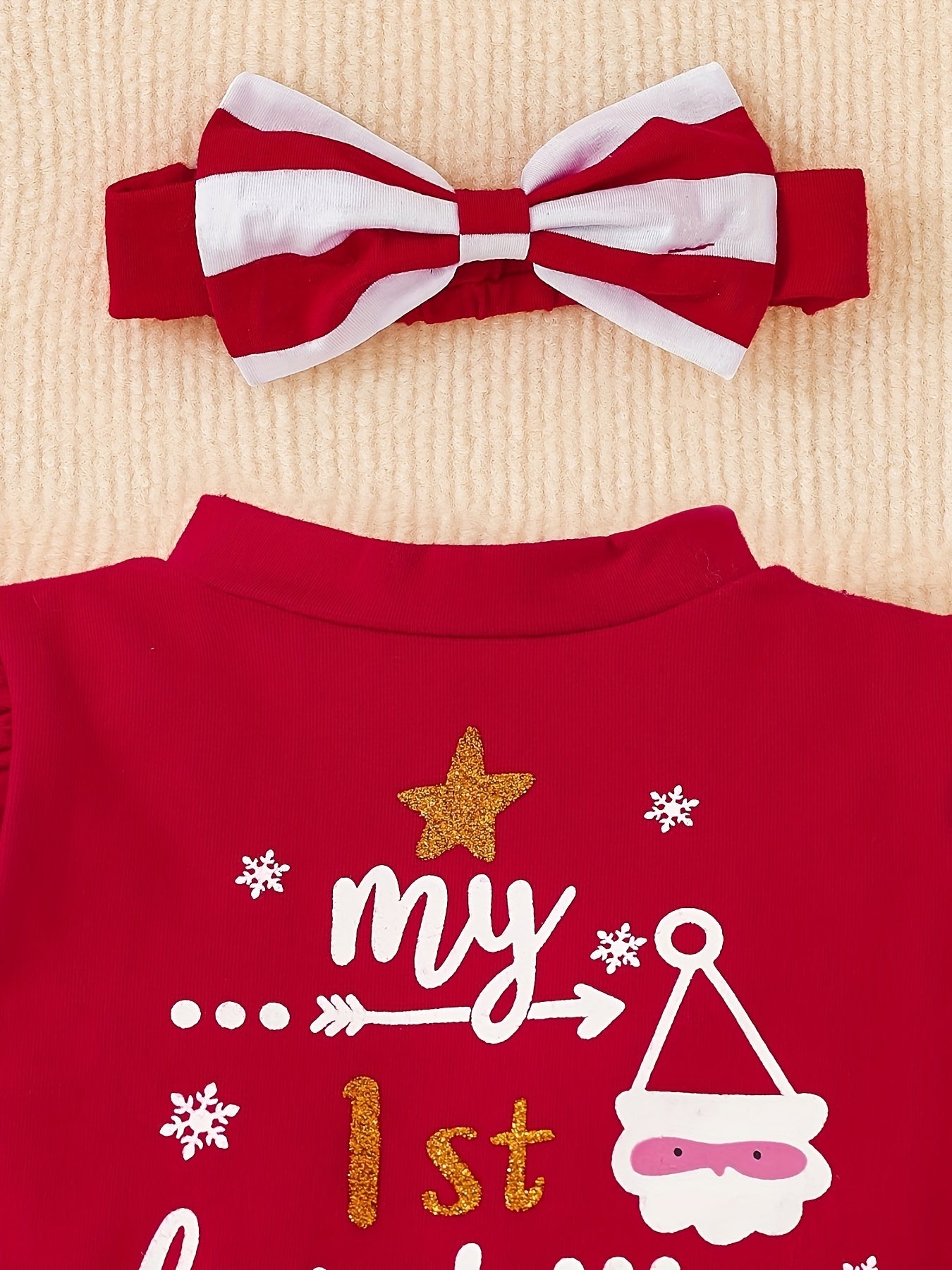 Baby Girl Christmas Outfits, Fall Winter Long Sleeve My First Christmas Letter Print Dress Top + Striped Pants 2pcs outdoor clothes Outdoor Set 3-18 Months, Outdoor Cloth
