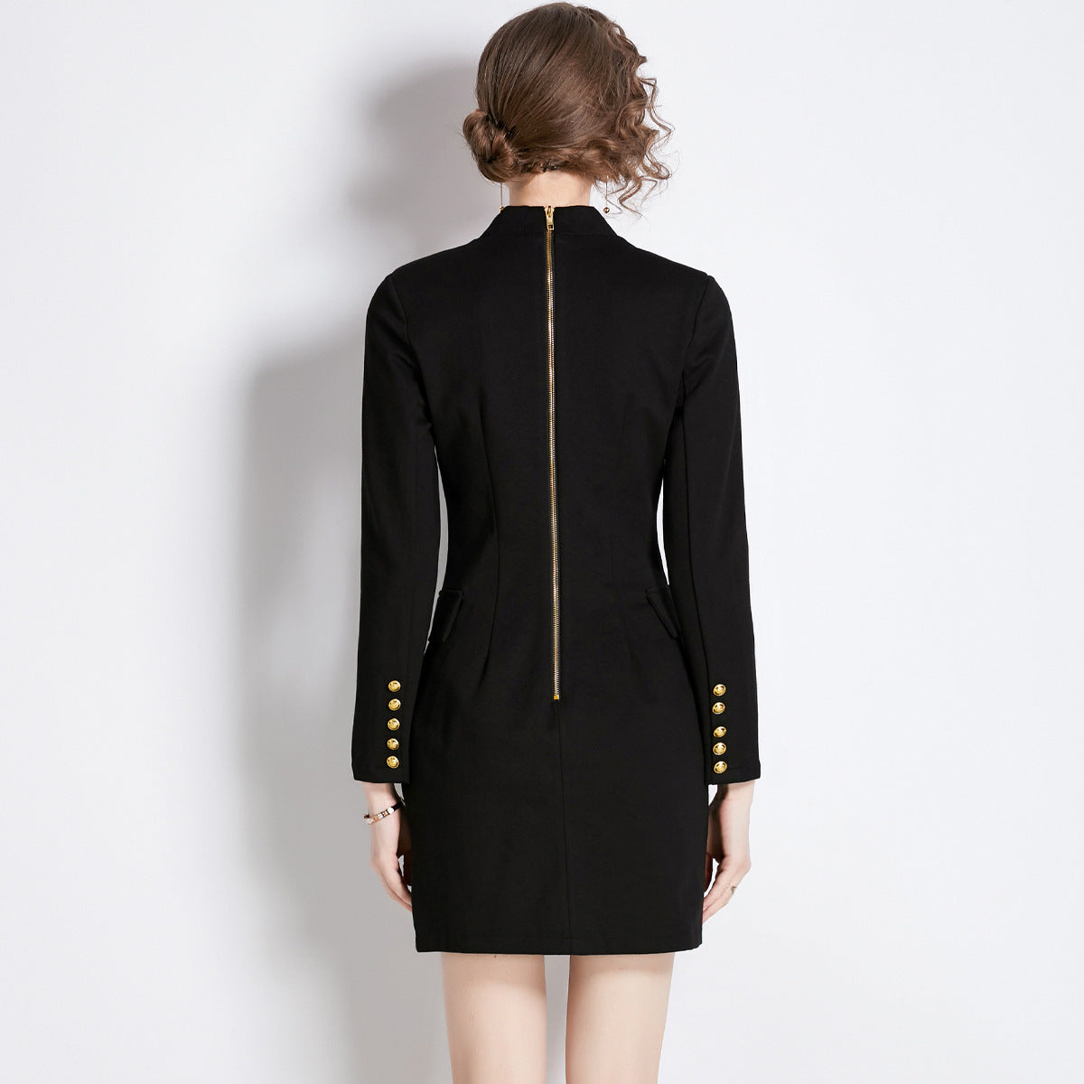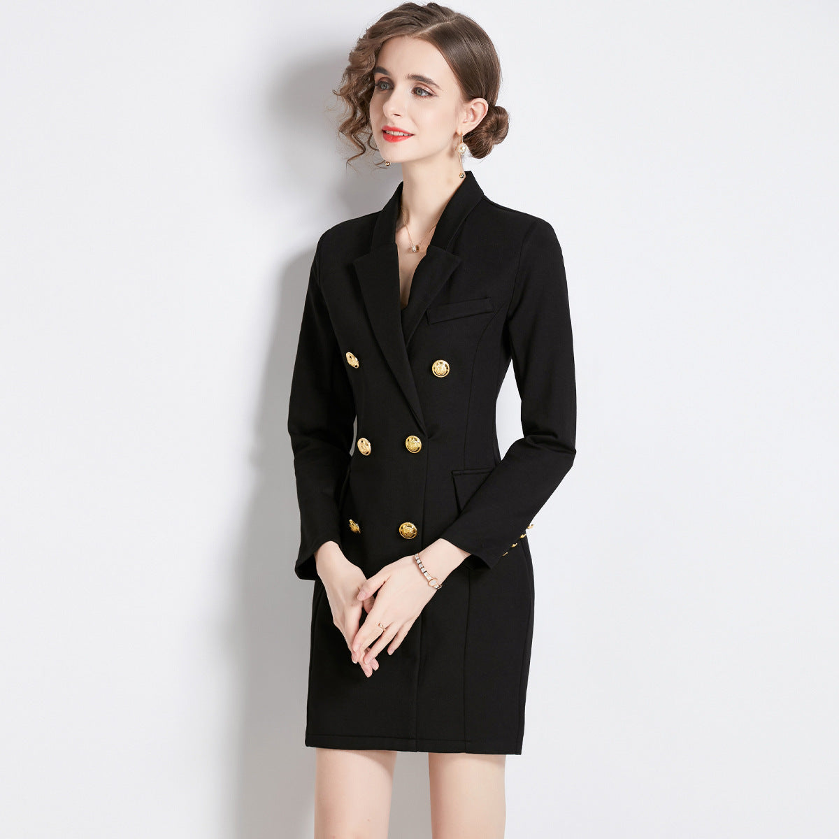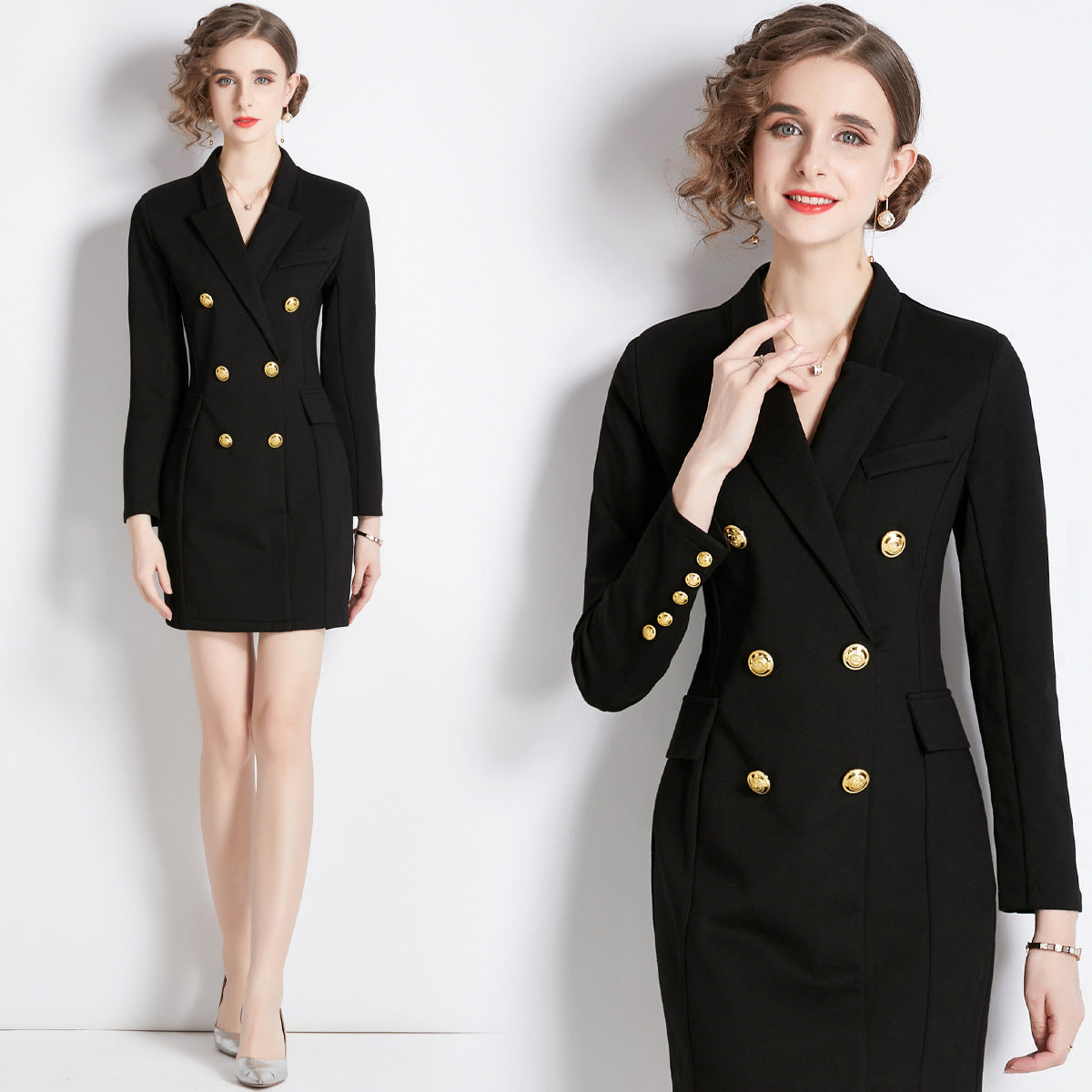 Black dress long sleeve new autumn dress double breasted commuting temperament Korean version thin suit skirt