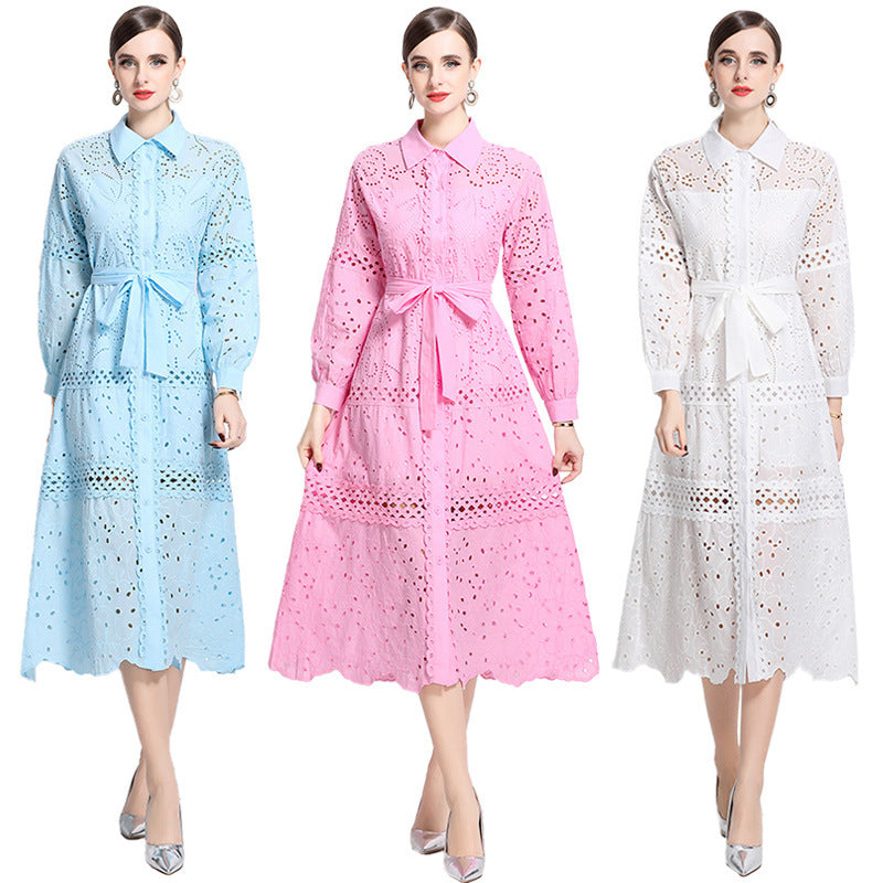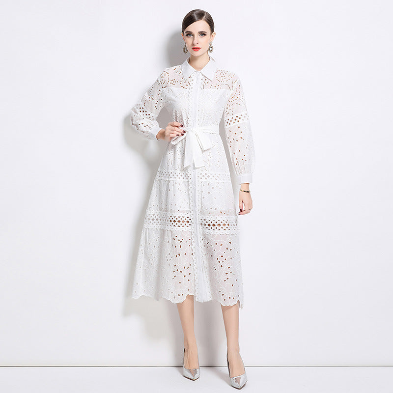 Bohemian vacation dress women's popular new age-reducing bubble sleeves slim-fitting long heavy industry embroidered shirt skirt