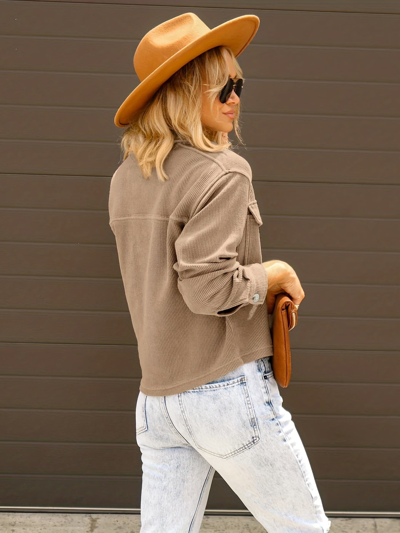 Button Front Flap Pockets Jacket, Casual Long Sleeve Jacket For Spring & Fall, Women's Clothing