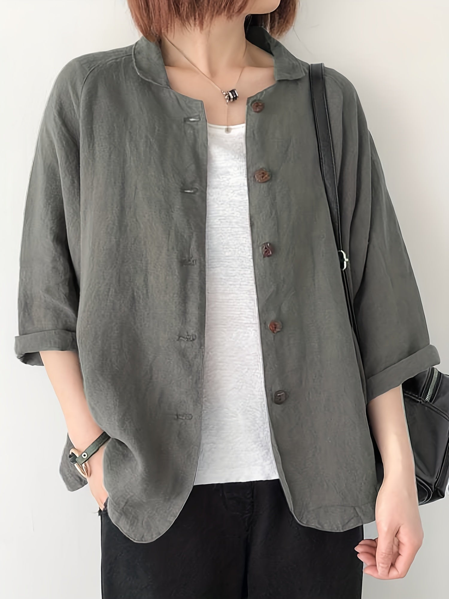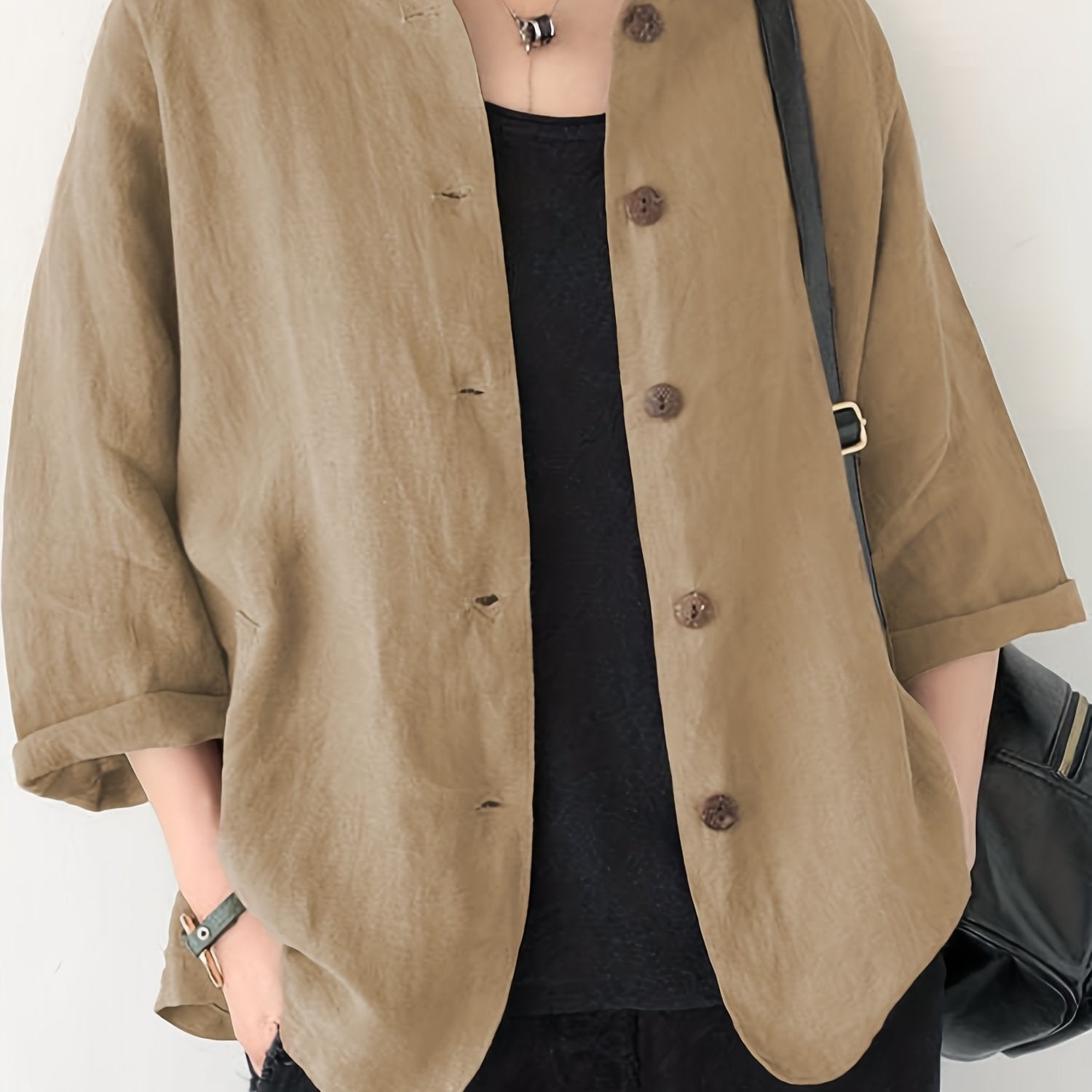 Button Front Jackets, Casual Turn Down Collar Long Sleeve Solid Outerwear For Spring & Summer, Women's Clothing
