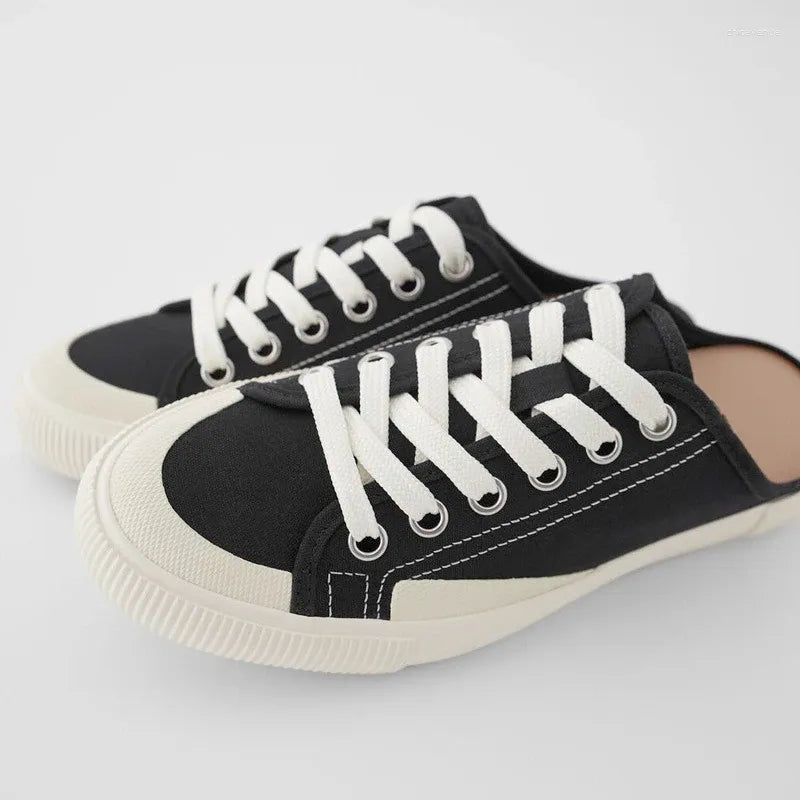 Casual Shoes Women Canvas Slipper Spring Slip On Thick Bottomed Leisure Cloth Female Fashion Lace Up Vulcanized Footwear