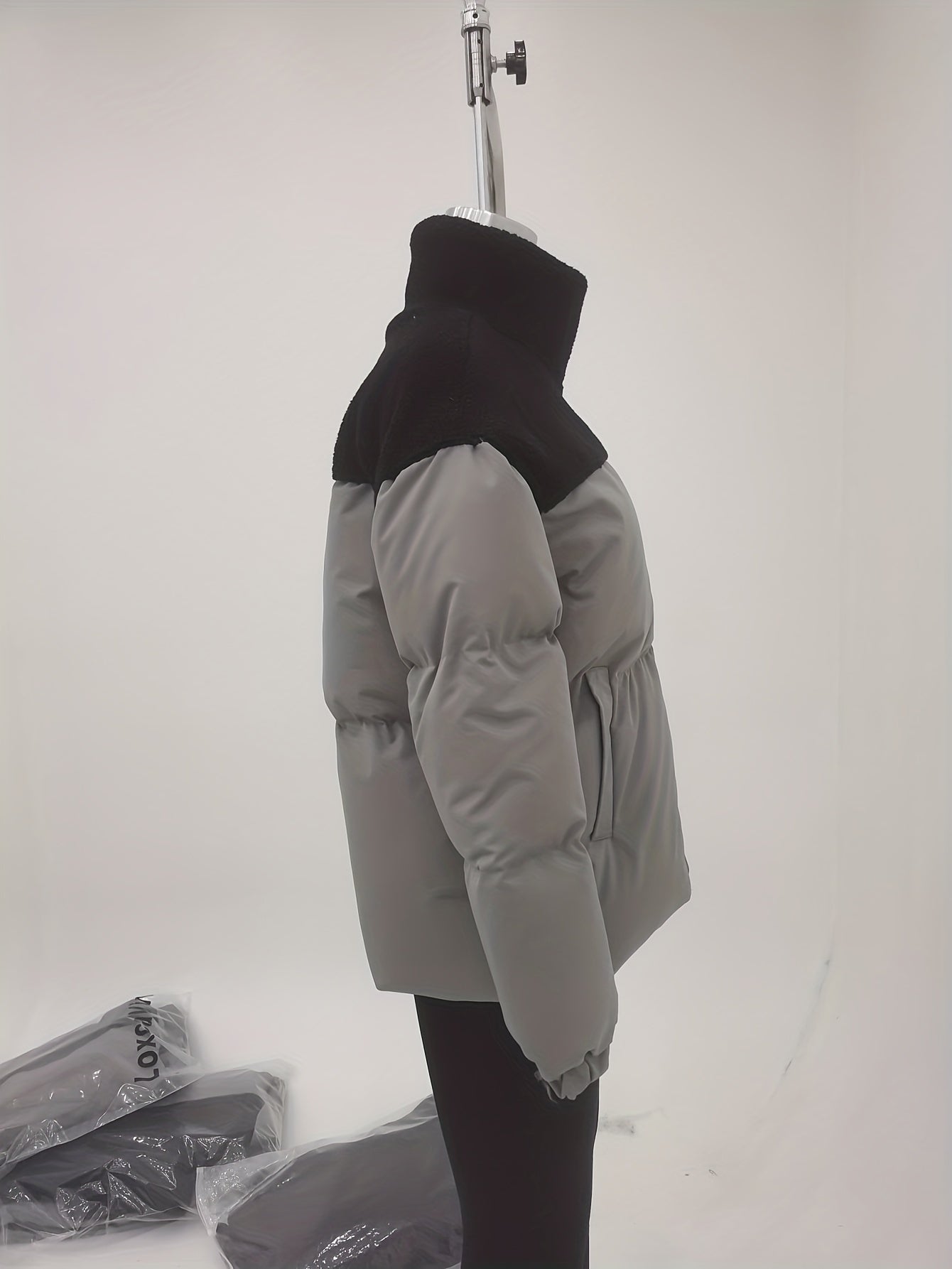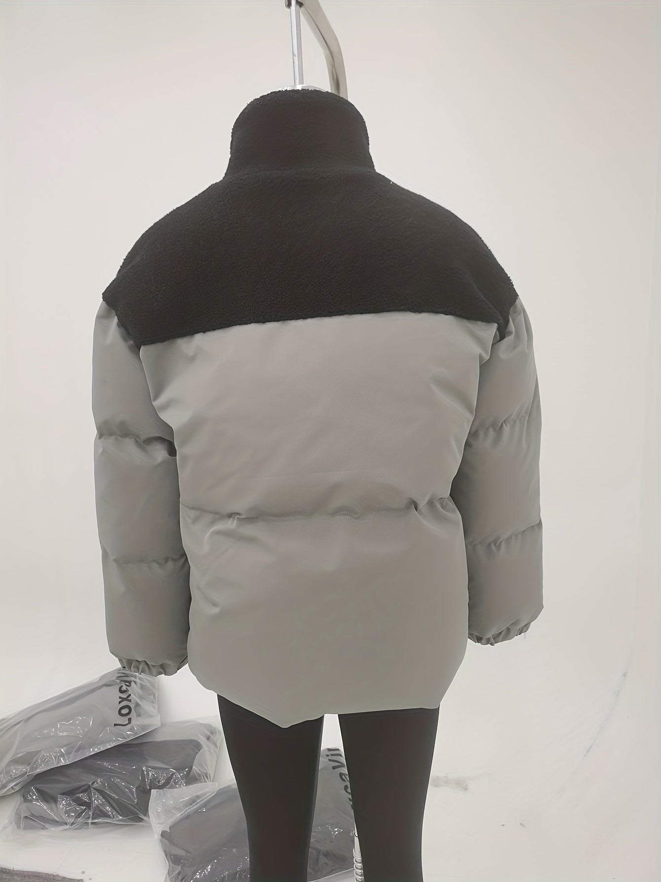 Color Block Zip Up Warm Coat, Casual Long Sleeve Winter Outerwear, Women's Clothing