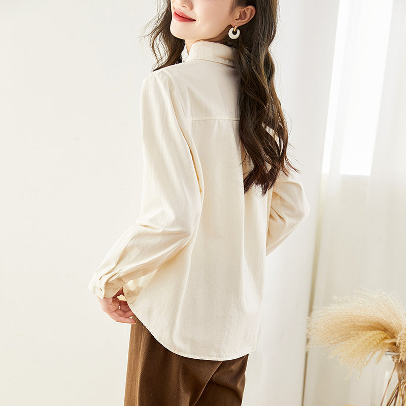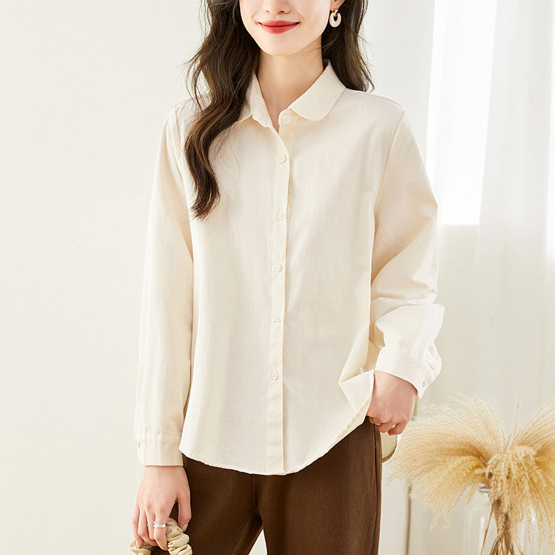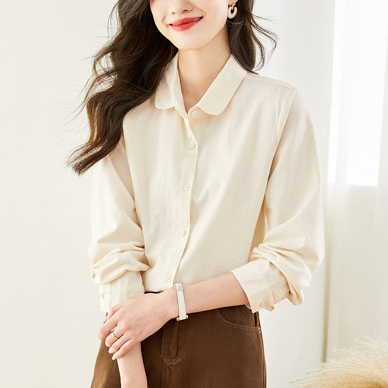 Cotton cocoon, doll collar shirt, women's long sleeves spring and autumn new top, basic commuter temperament shirt