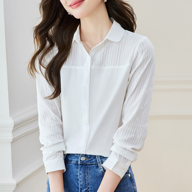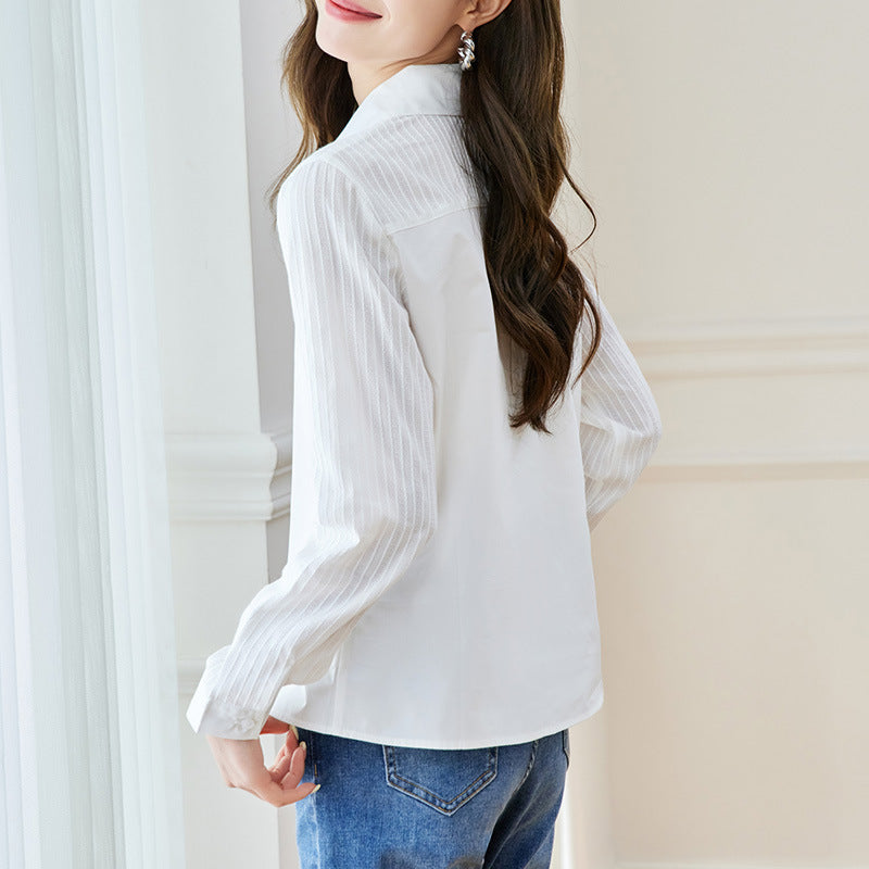 Cotton cocoon, white shirt women's long sleeves spring and autumn new pure cotton splicing top slim and thin commuter shirt