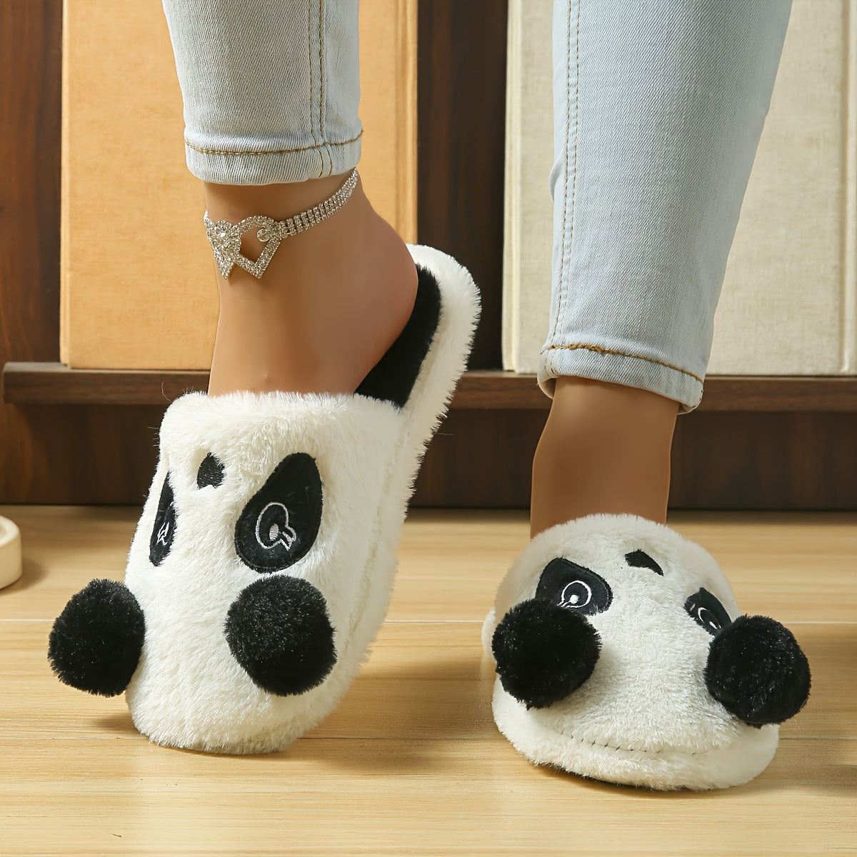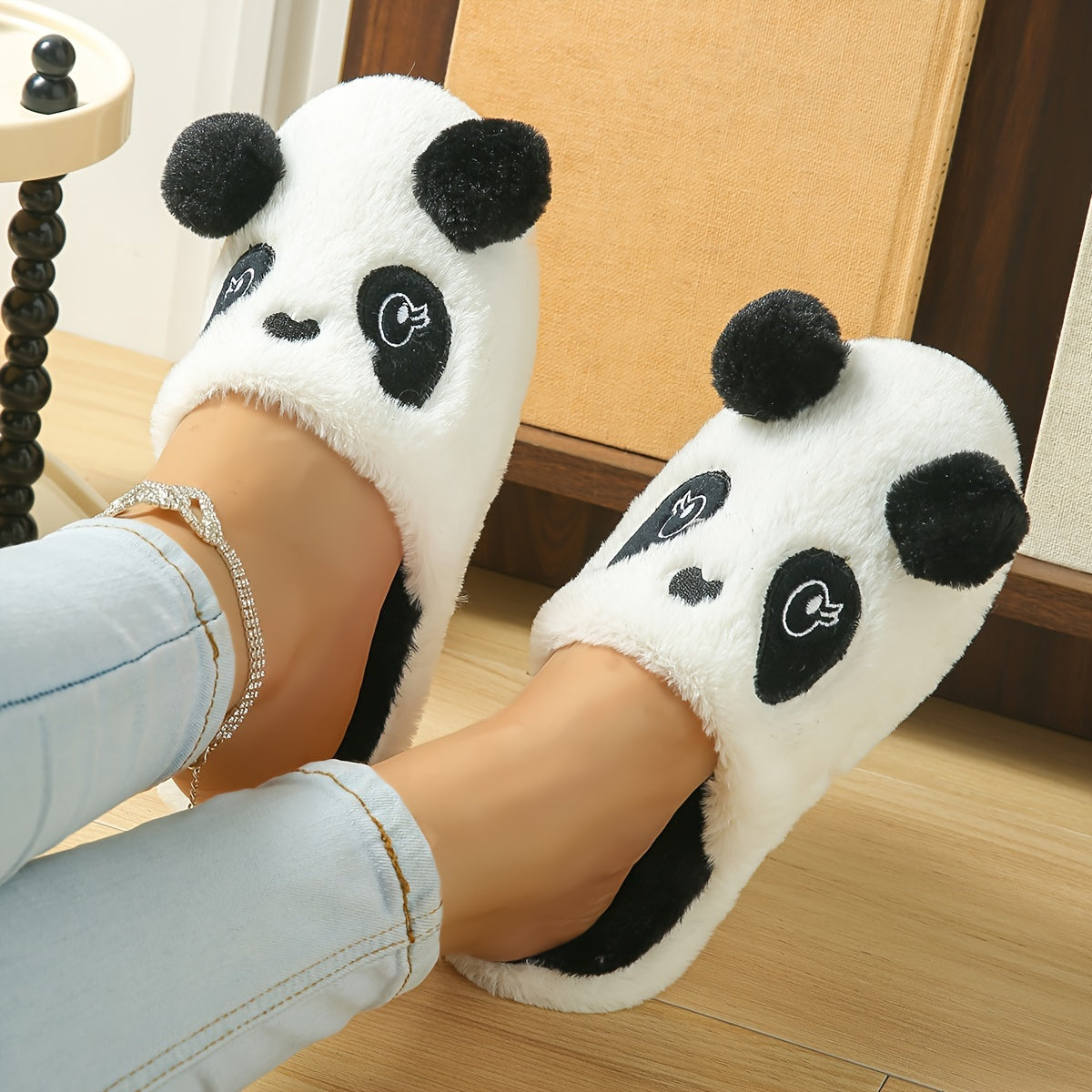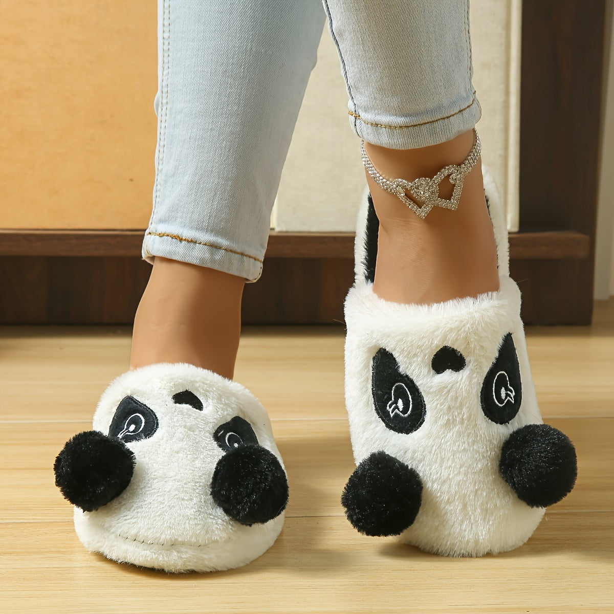 Cozy Panda Plush Slippers for Women - Soft, Thick Faux Rabbit Fur, Quiet Embroidered Design, Perfect for Indoor Wear in Spring, Fall & Winter
