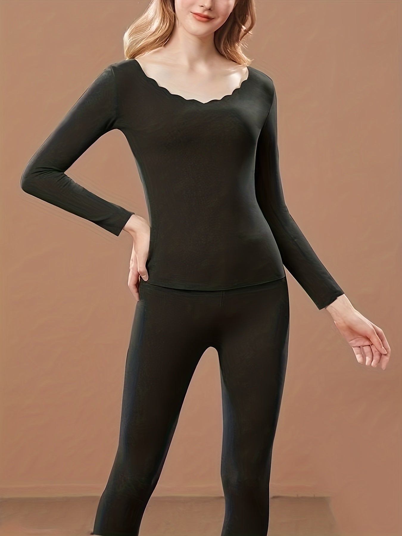 Cozy Seamless Thermal Underwear Set - Women's Loungewear & Underwear Sets with Long Sleeve Crew Neck Tops and Pants for Ultimate Comfort and Relaxation