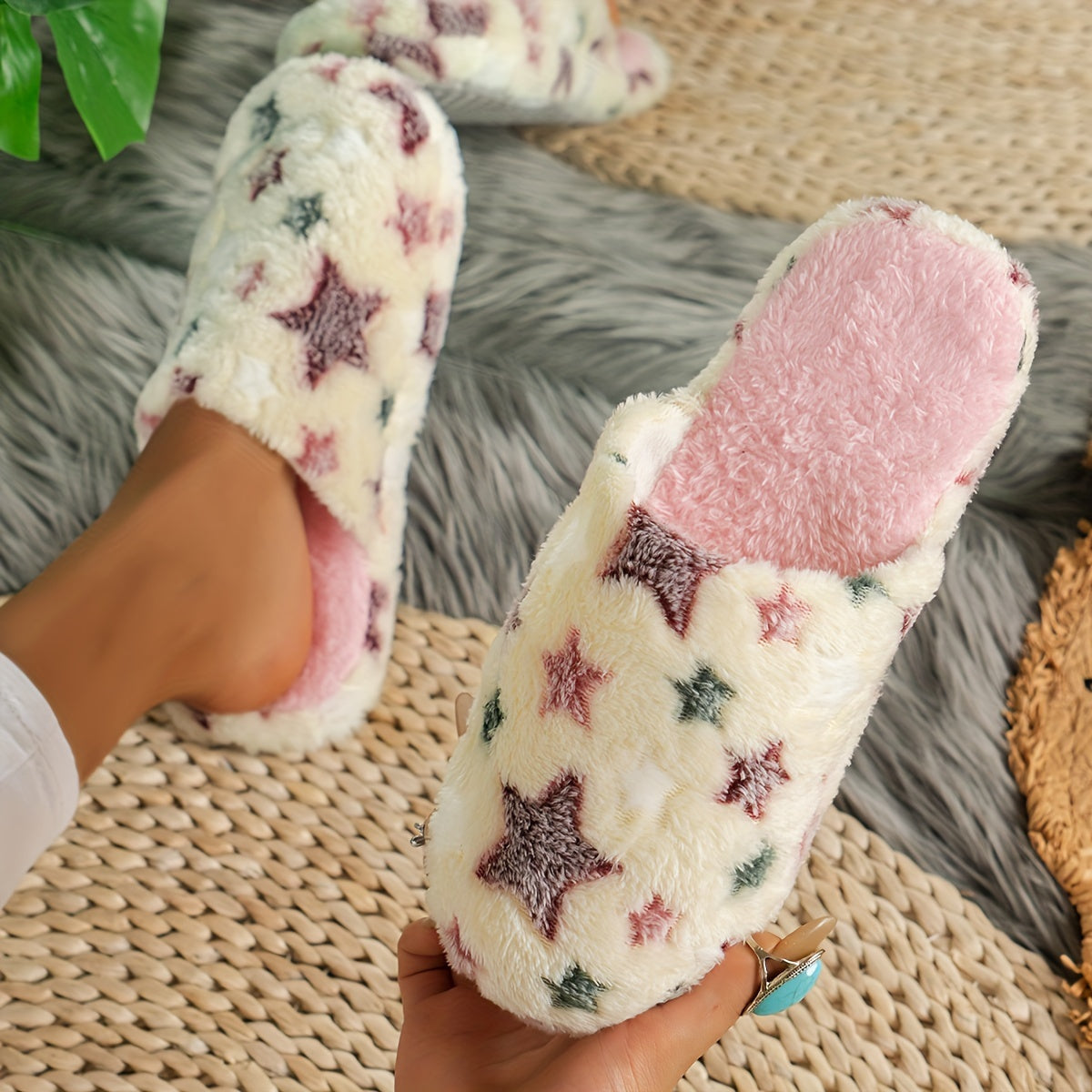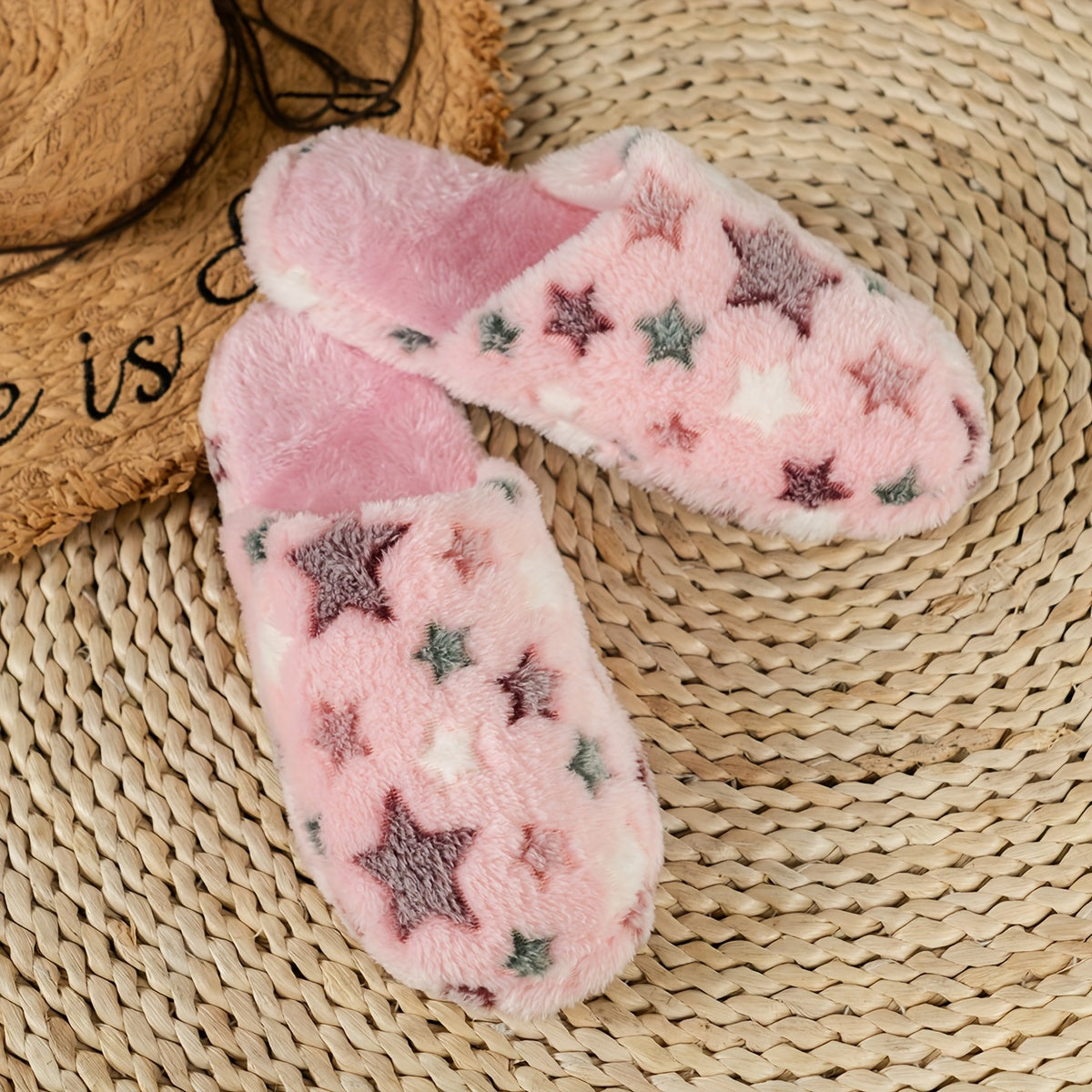 Cozy Winter Slippers: Soft Fleece with Cute Star Patterns - Perfect for Indoor Comfort