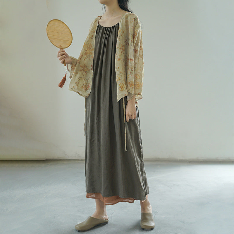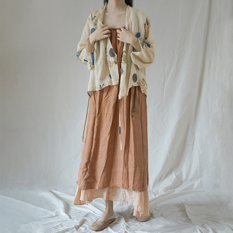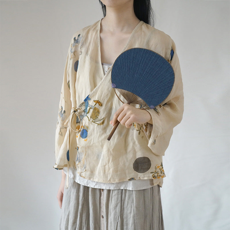 design, national style, Song Dynasty ramie lace-up cardigan, retro gentle literary and oblique shirt S22166