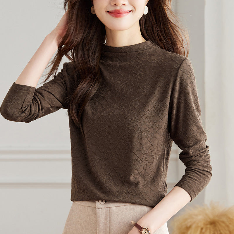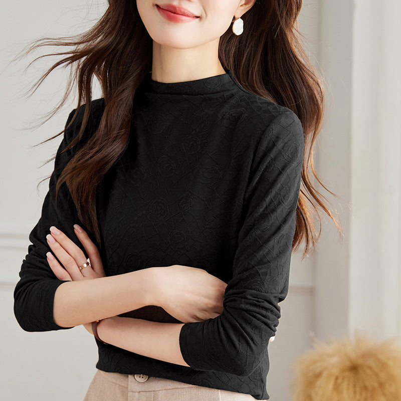 direct sales autumn and winter stand-up collar commuting simple long-sleeved micro-elastic knitted bottoming shirt women's top T-shirt