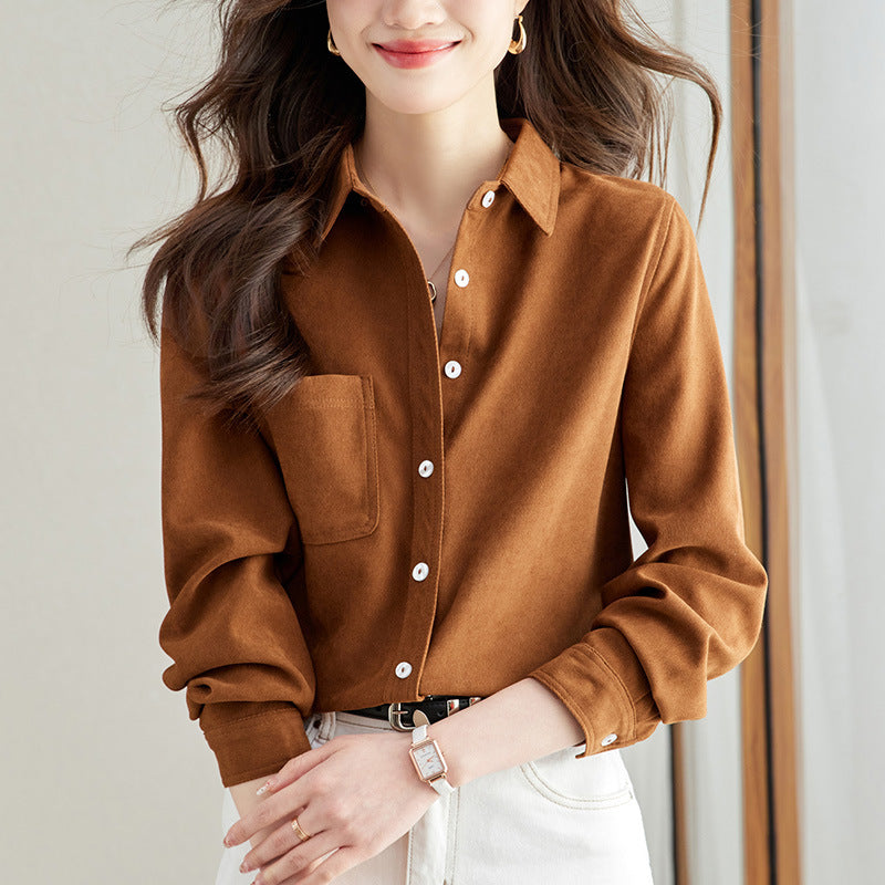 direct sales autumn new short coat women's commuter chic pocket lapel shirt women's single pocket polished shirt