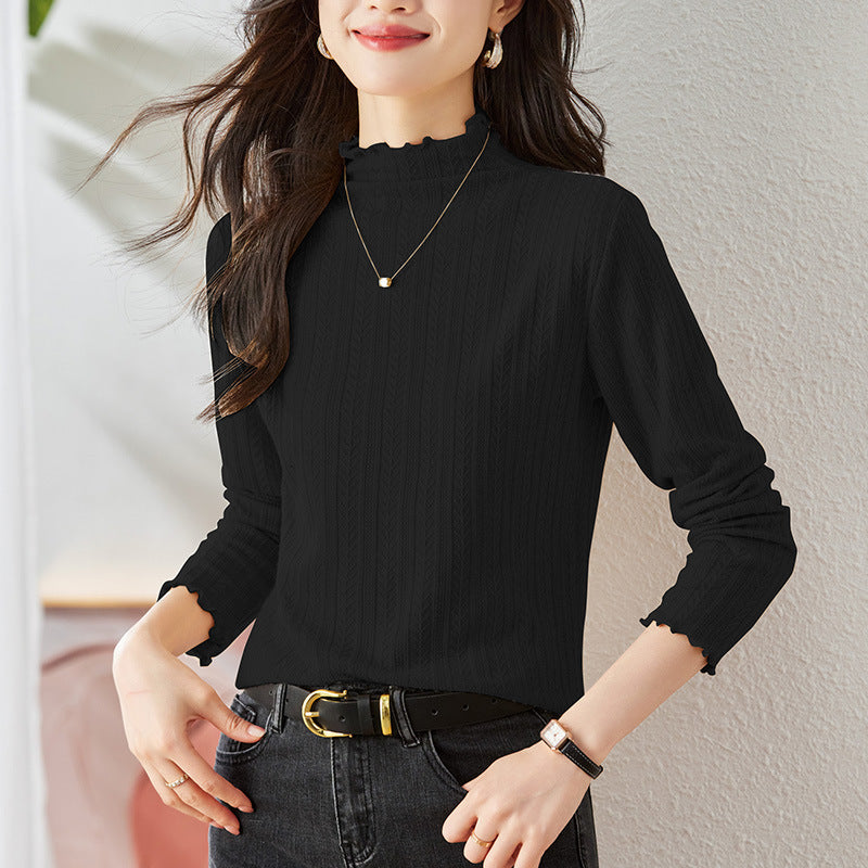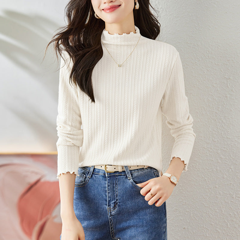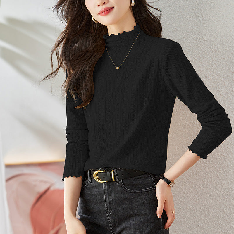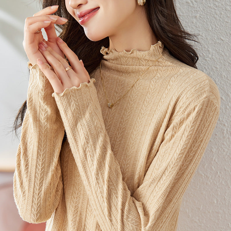 direct sales knitted top women's semi-turtleneck inner spring retro warm sweater short bottoming shirt