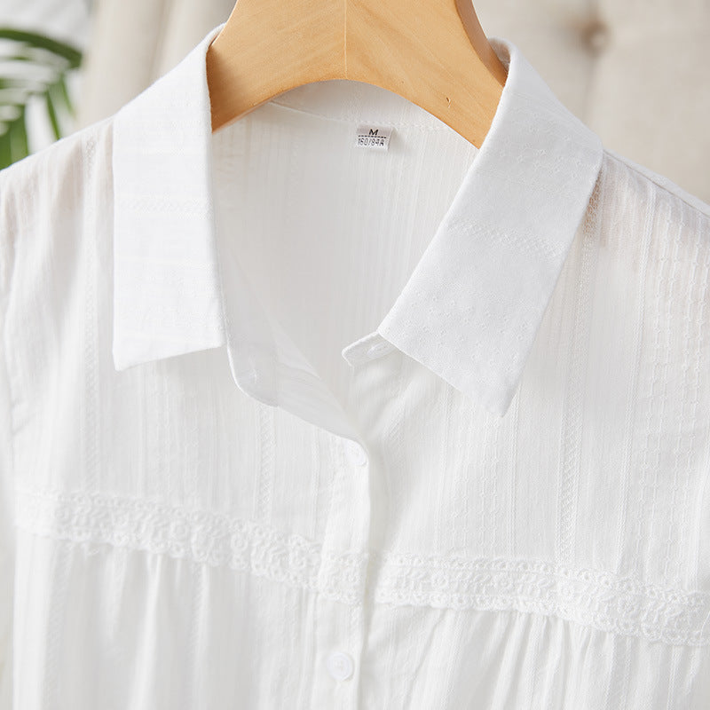 direct sales lace splicing white shirt women's long sleeves spring new shirt commuter temperament top