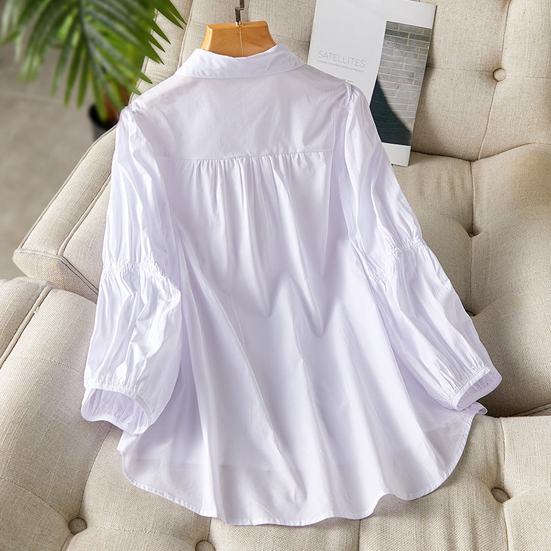 direct sales lantern sleeves pure cotton white shirt women's new nine-quarter sleeves Korean version fashion temperament pure cotton top
