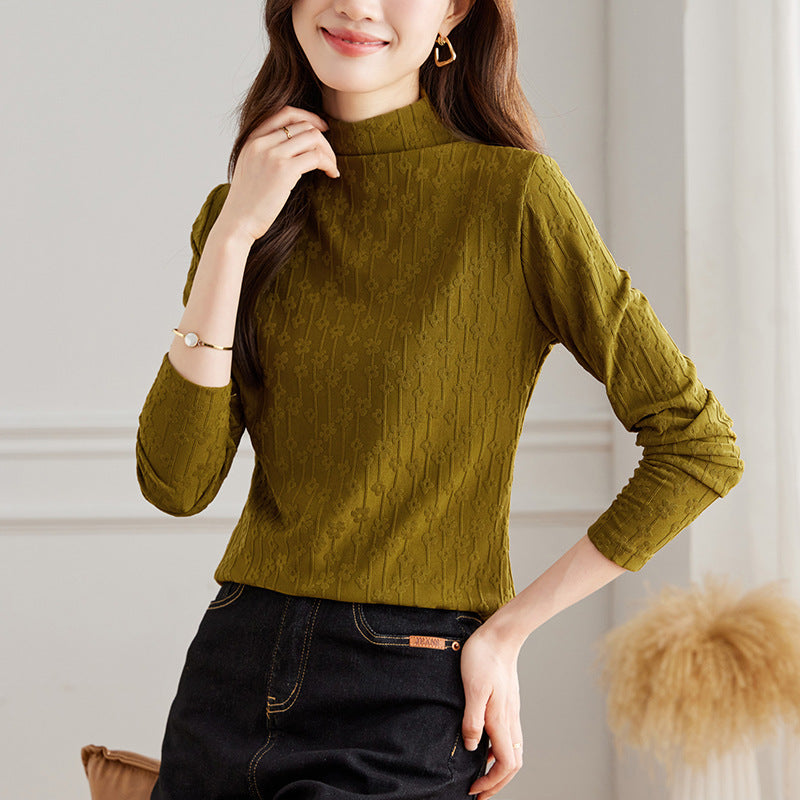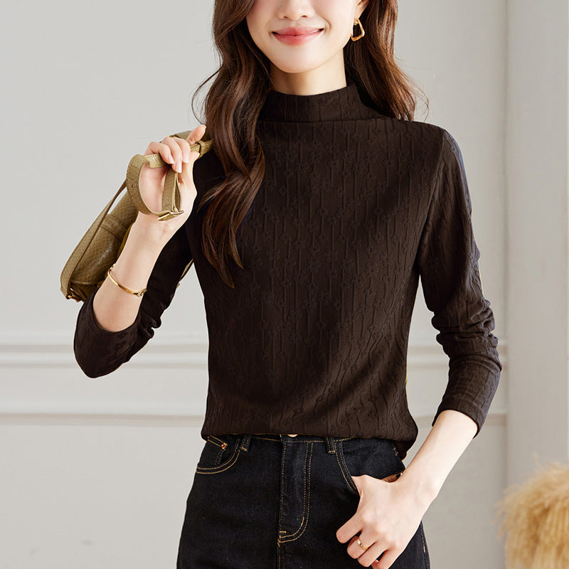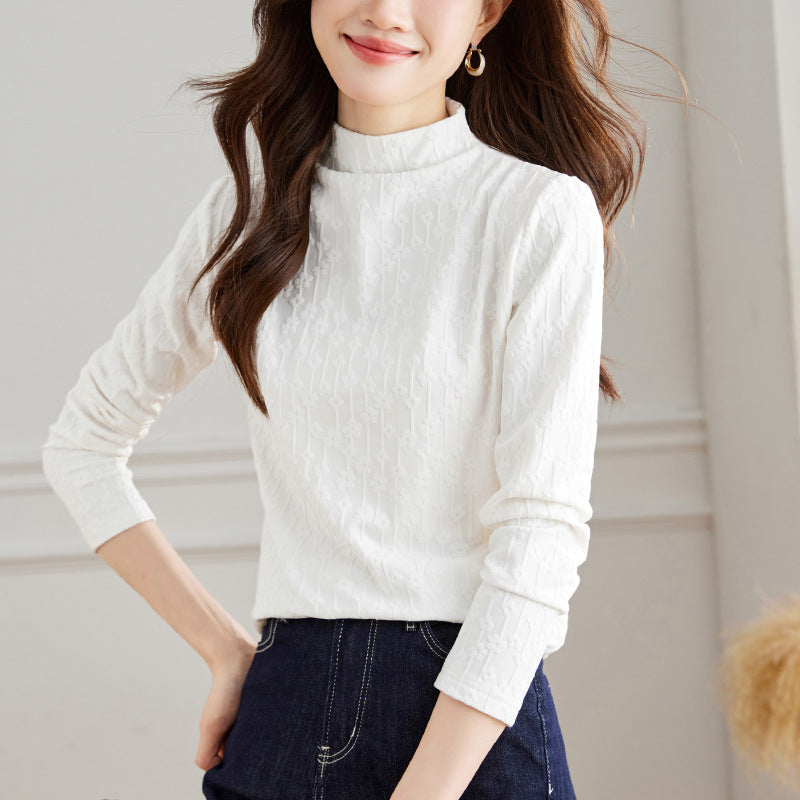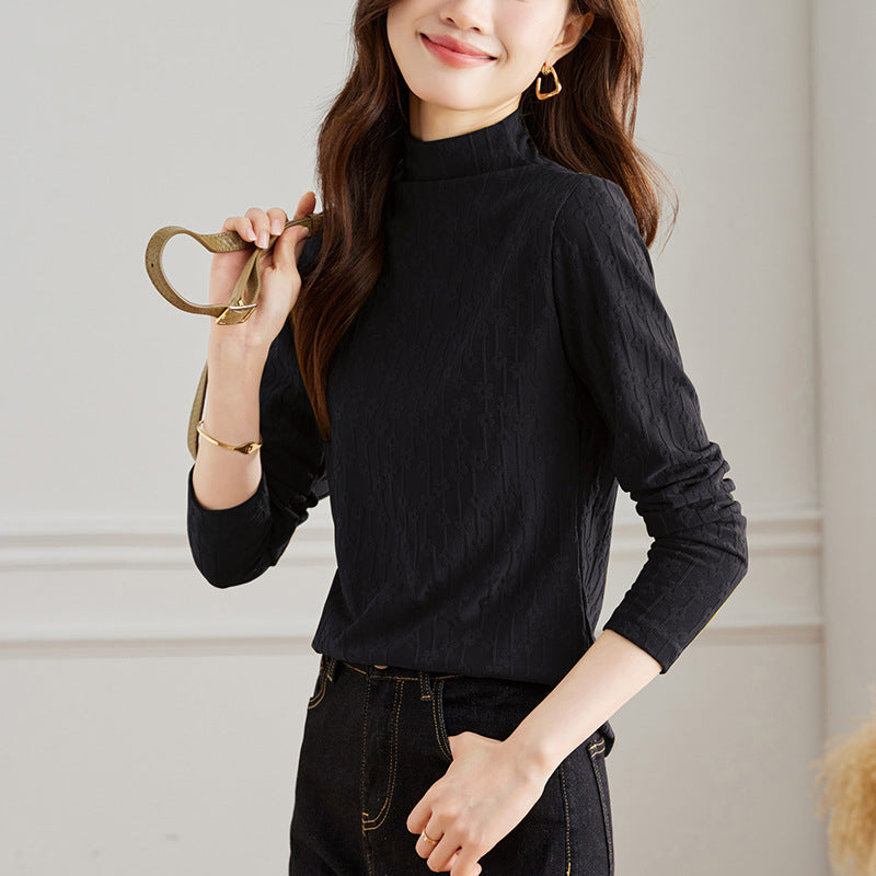 direct sales velvet semi-turtleneck lace women's autumn and winter new long-sleeved high-end Popular-style bottoming shirt