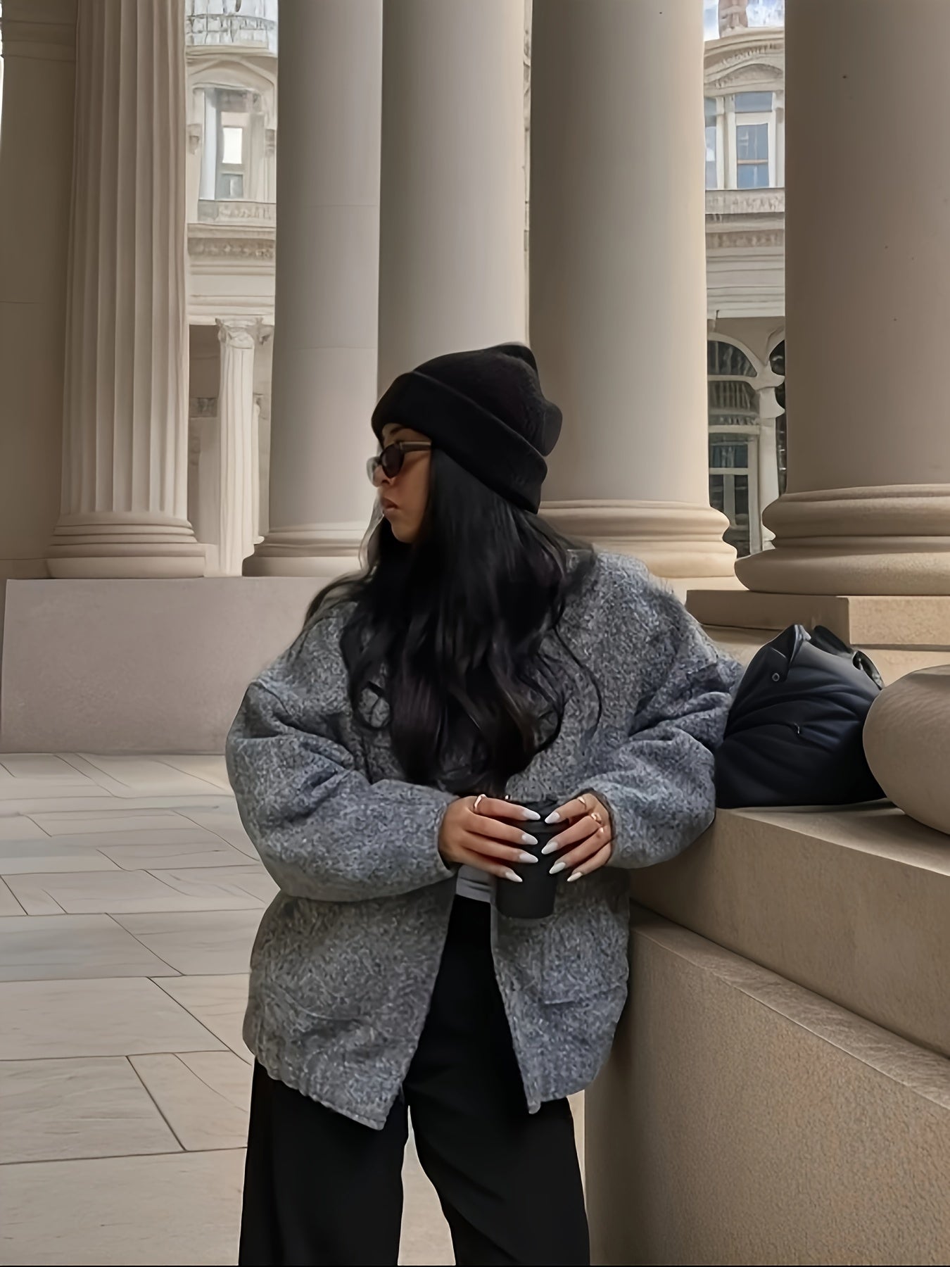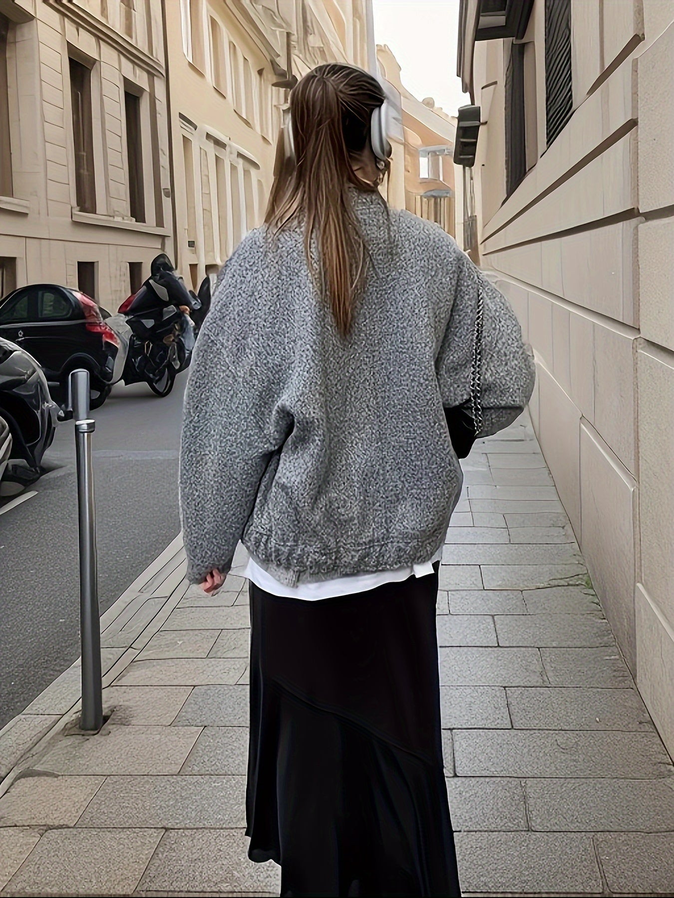 Drop Shoulder Solid Jacket, Casual Open Front Long Sleeve Outerwear, Women's Clothing