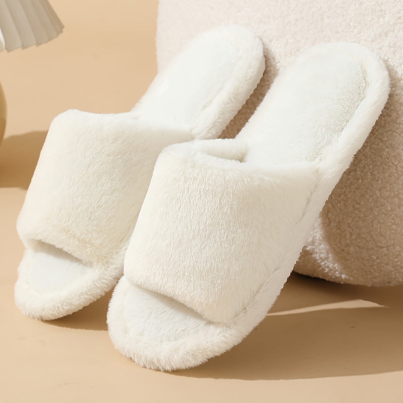 Elegant Solid Color Fluffy Slippers, 2 Fuzzy Plush Indoor Home Non-Slip Slippers, Indoor Warm Cozy Shoes